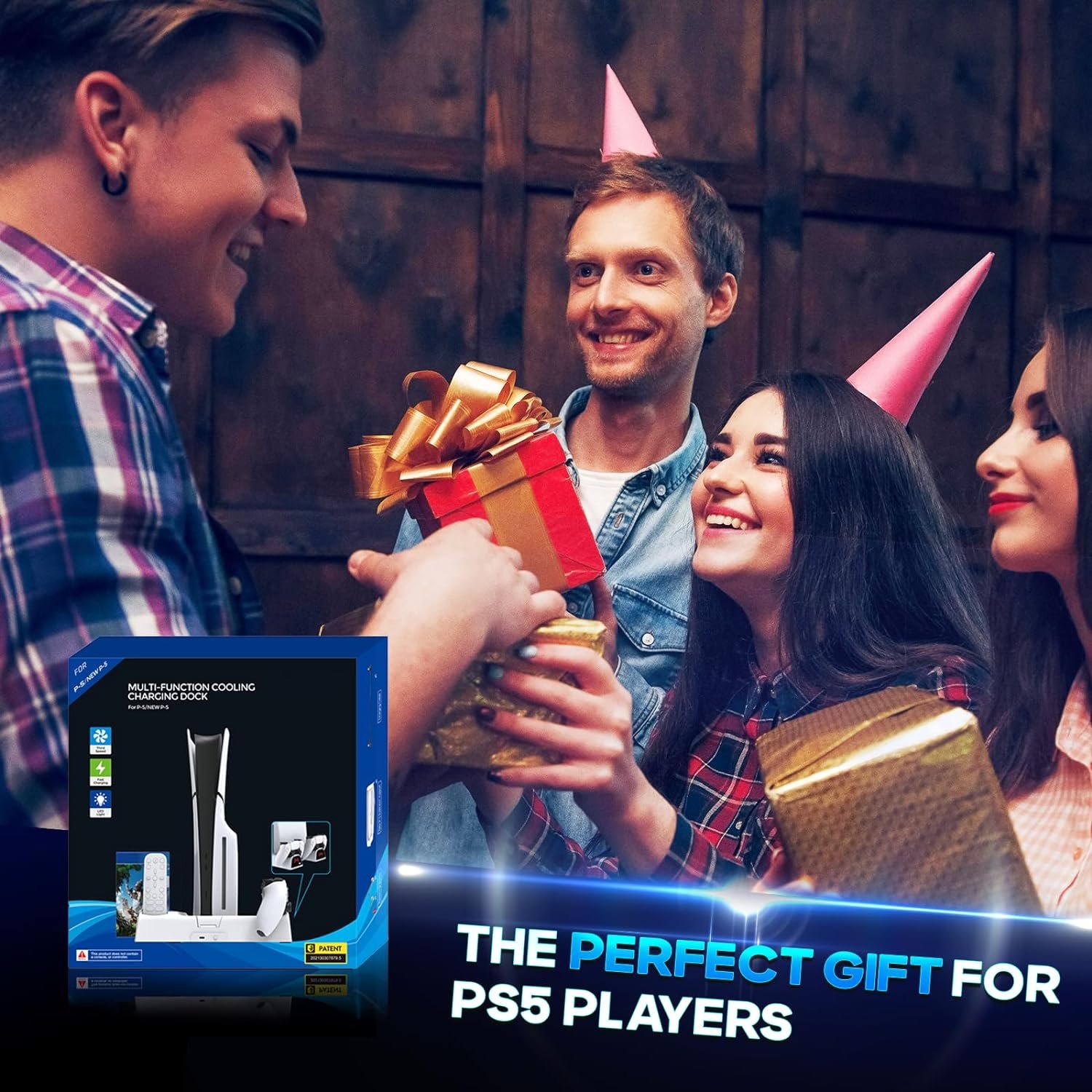 【Efficient Cooling System】Enhance your PlayStation 5’s built-in cooling system with our downward design Vertical Cooling Stand, tailored specifically for the PS5 & PS5 Slim Cooling Station. Adjust the fan speed to your liking – low, medium, or high, indicated by a vibrant blue glow. Experience reduced console temperatures, improved performance, and an extended lifespan, thanks to our PS5 Slim Cooling Station integration.
