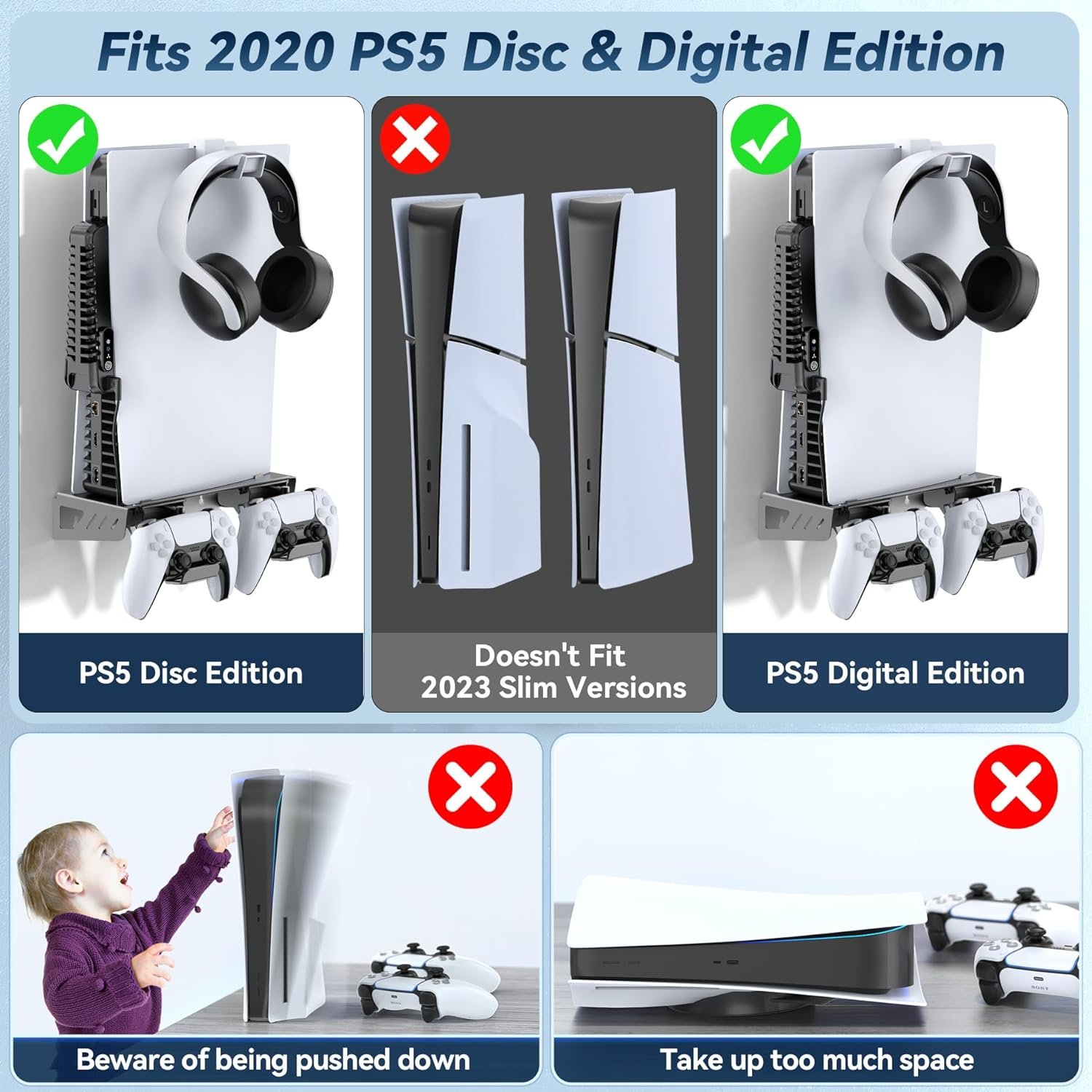 💠【Sturdy Metal Mount & Vertical Design】The PS5 Vertical stand with efficient, ps5 cooling system,dual PS5 charger, a 2.0 USB ports, ps5 headset holder,ps5 screw storage all-in-one playstation 5 stand, keeping all playstation 5 accessories neat and tidy, making this ps5 accessories wall mount be a better replacement for sony official PS5 charging station.