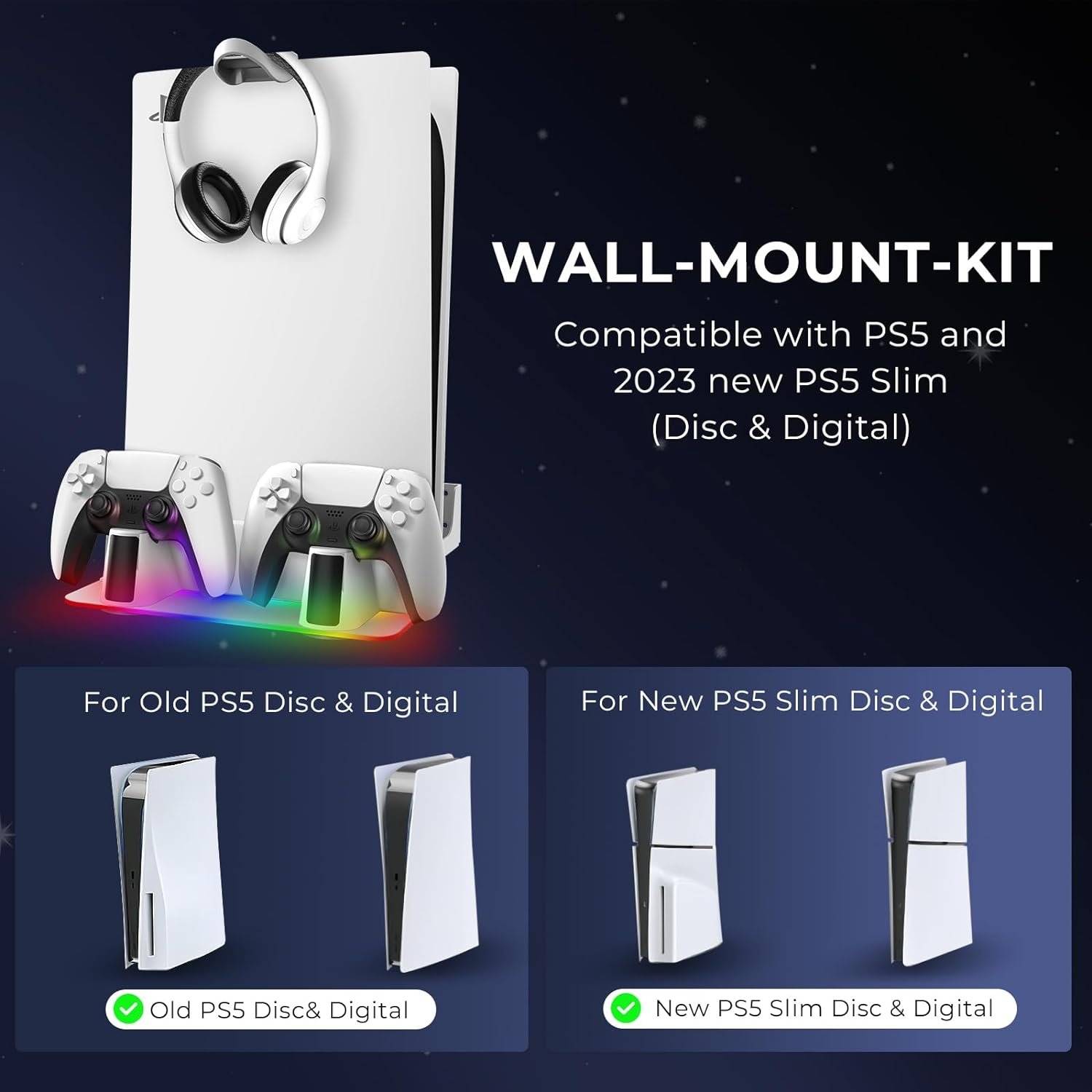 Wall Mount Kit Compatible with PS5 Disc & Digital Edition.