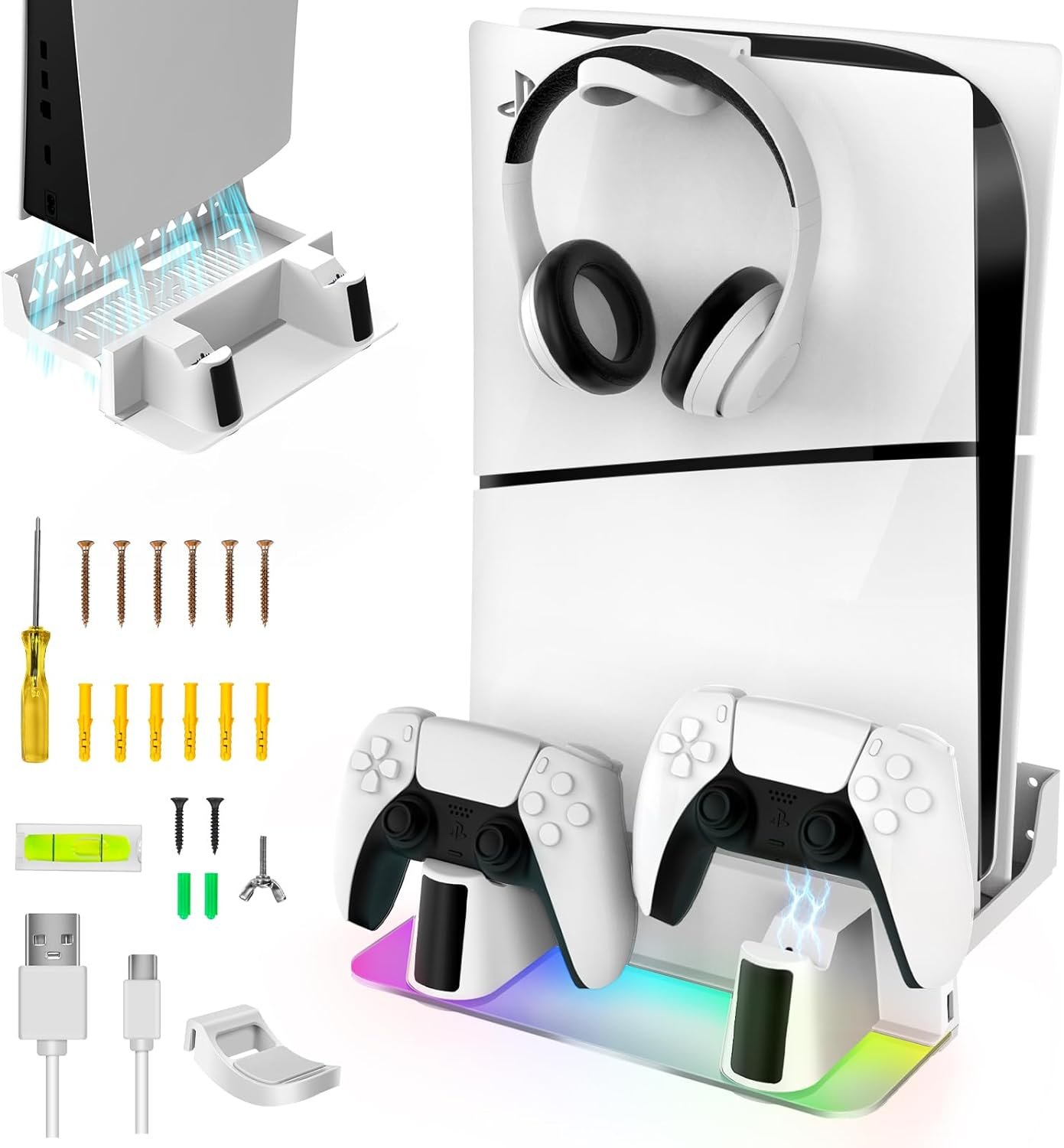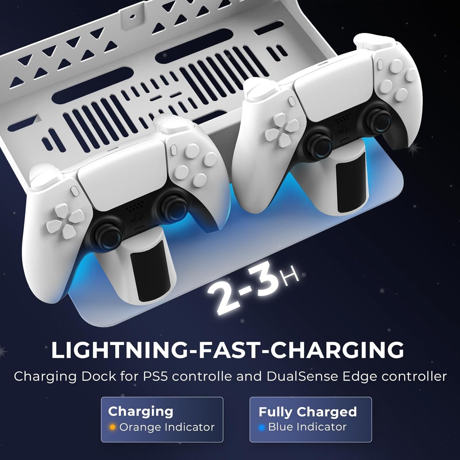 PS5 Wall Mount (Disc&Digital)/Dual Fast Charging Dock (PS5 Controller and DualSense Edge)/Headphone Hanger-All in One Built for Gaming!