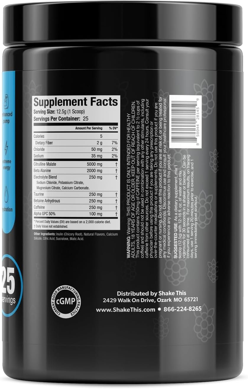 ENHANCED MUSCLE PUMPS – 5000mg of Citrulline malate works as a nitric oxide enhancer to facilitate noticeable muscle pumps