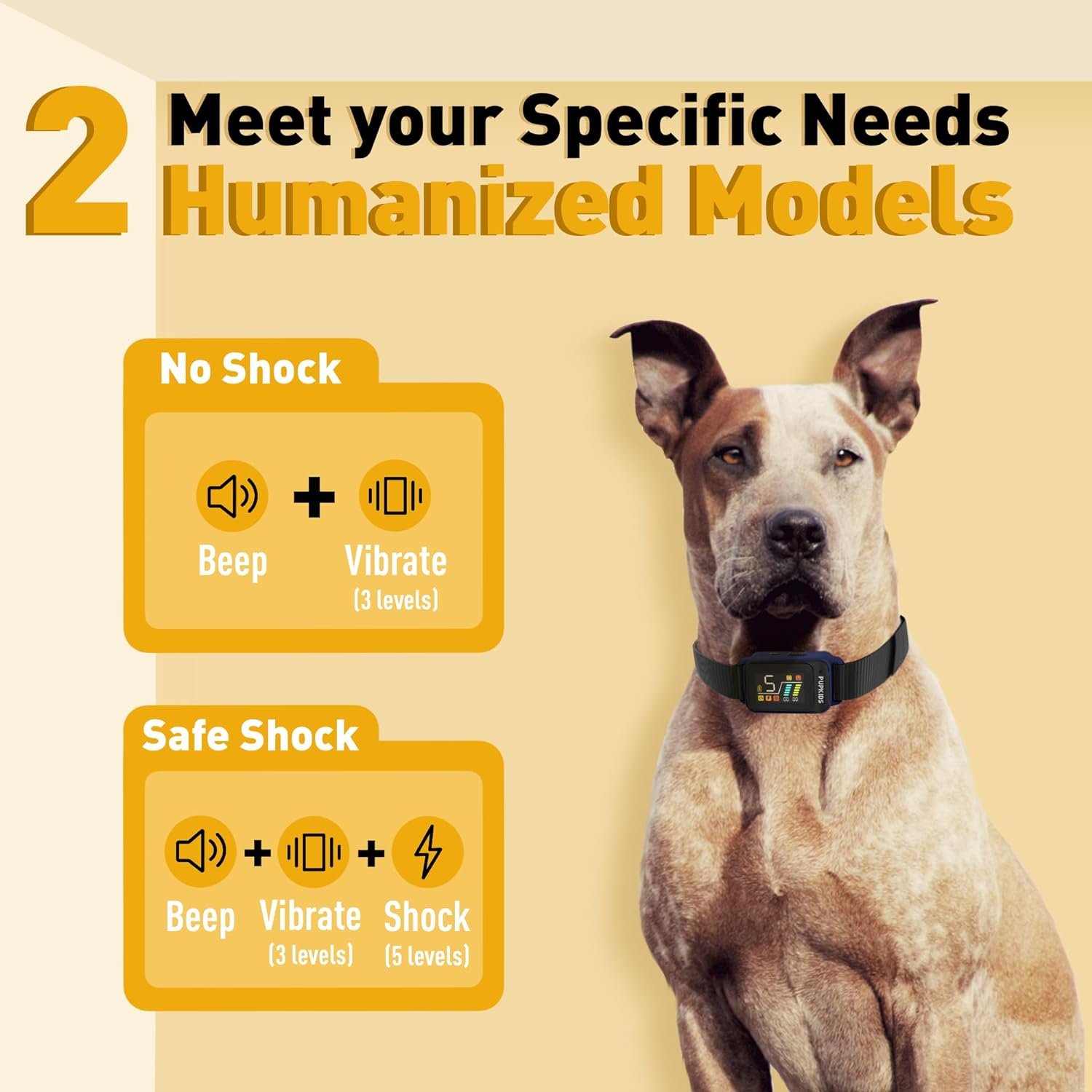 PUPKIDS 2024 AI Dog Bark Collar for Small Medium Large Dogs – 2 in1 No Shock & Safe Shock Barking Collar with 5 Sensitivities – IPX7 Waterproof Rechargeable Anti Bark Device(10-120 lbs)