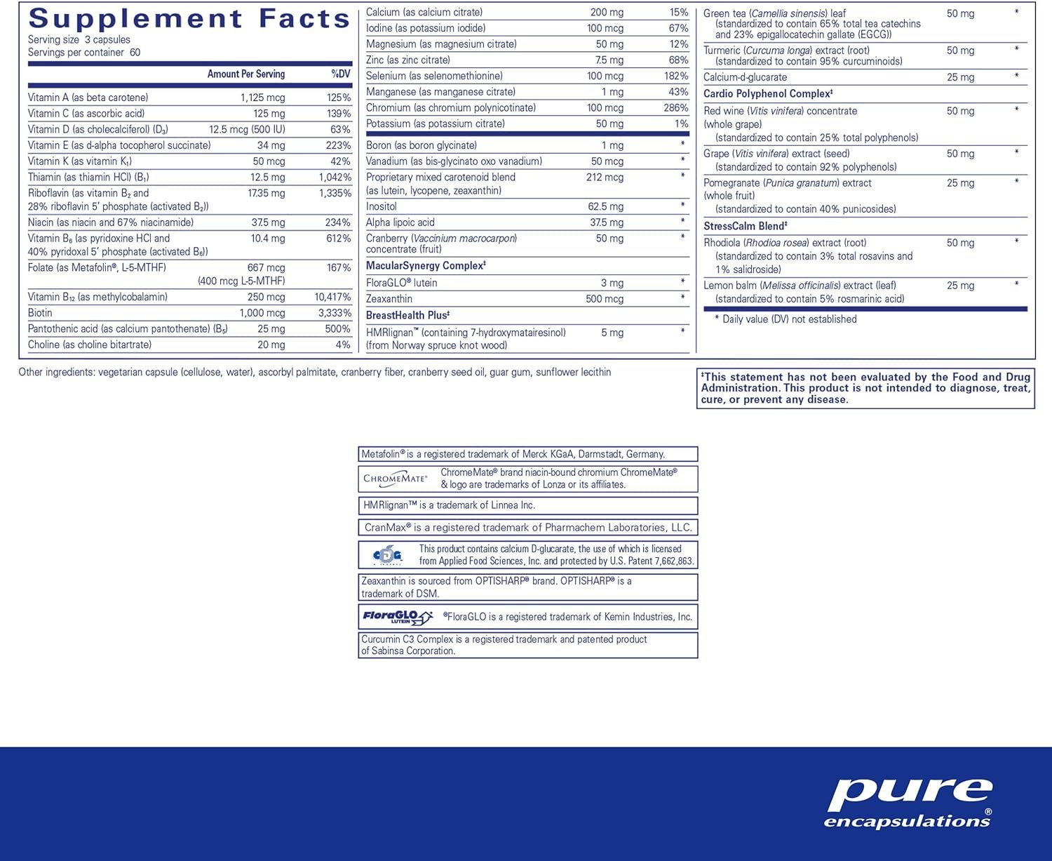 Overall Multivitamin Support: Women’s Nutrients multivitamin capsule is designed to support breast cell health, eye integrity, and urinary tract health*