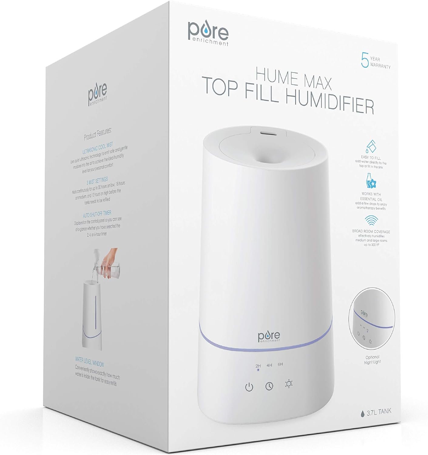 WHAT YOU GET: Top fill humidifier, AC power adapter, user manual, and Pure Enrichment’s guaranteed 5-Year Warranty. Our customer support team provides daily quality service and peace of mind to millions worldwide all from a brand you can trust.
