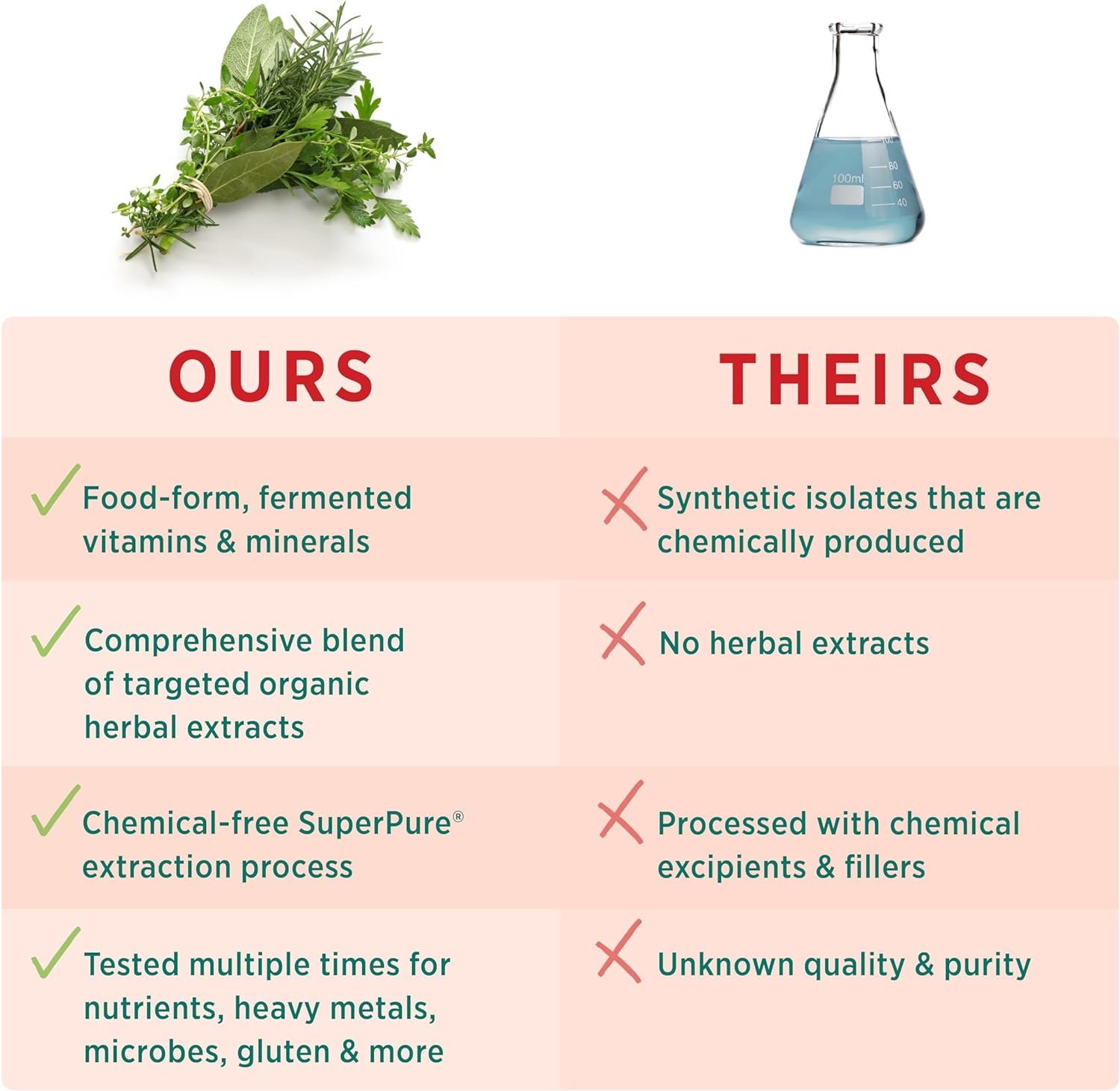 ENERGY, IMMUNE SUPPORT, & MORE: Core vitamins and minerals promote energy and strength; herbal adaptogens and botanical extracts provide support for stress, immune health, brain health, and more.