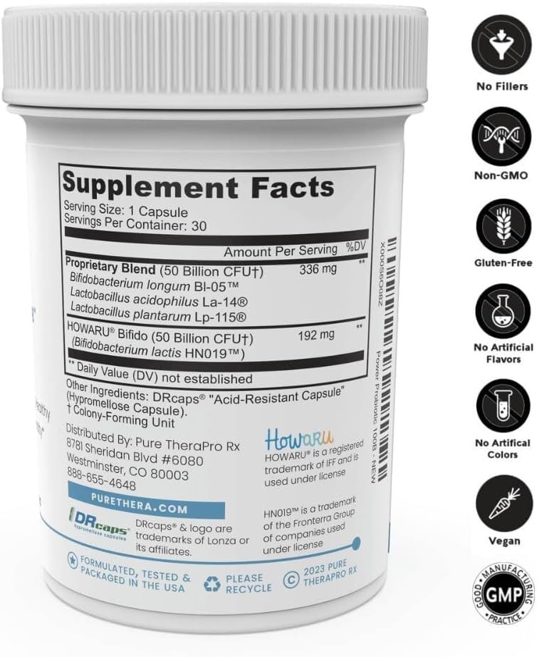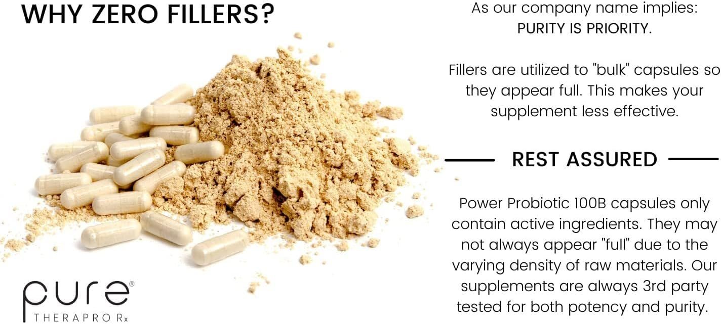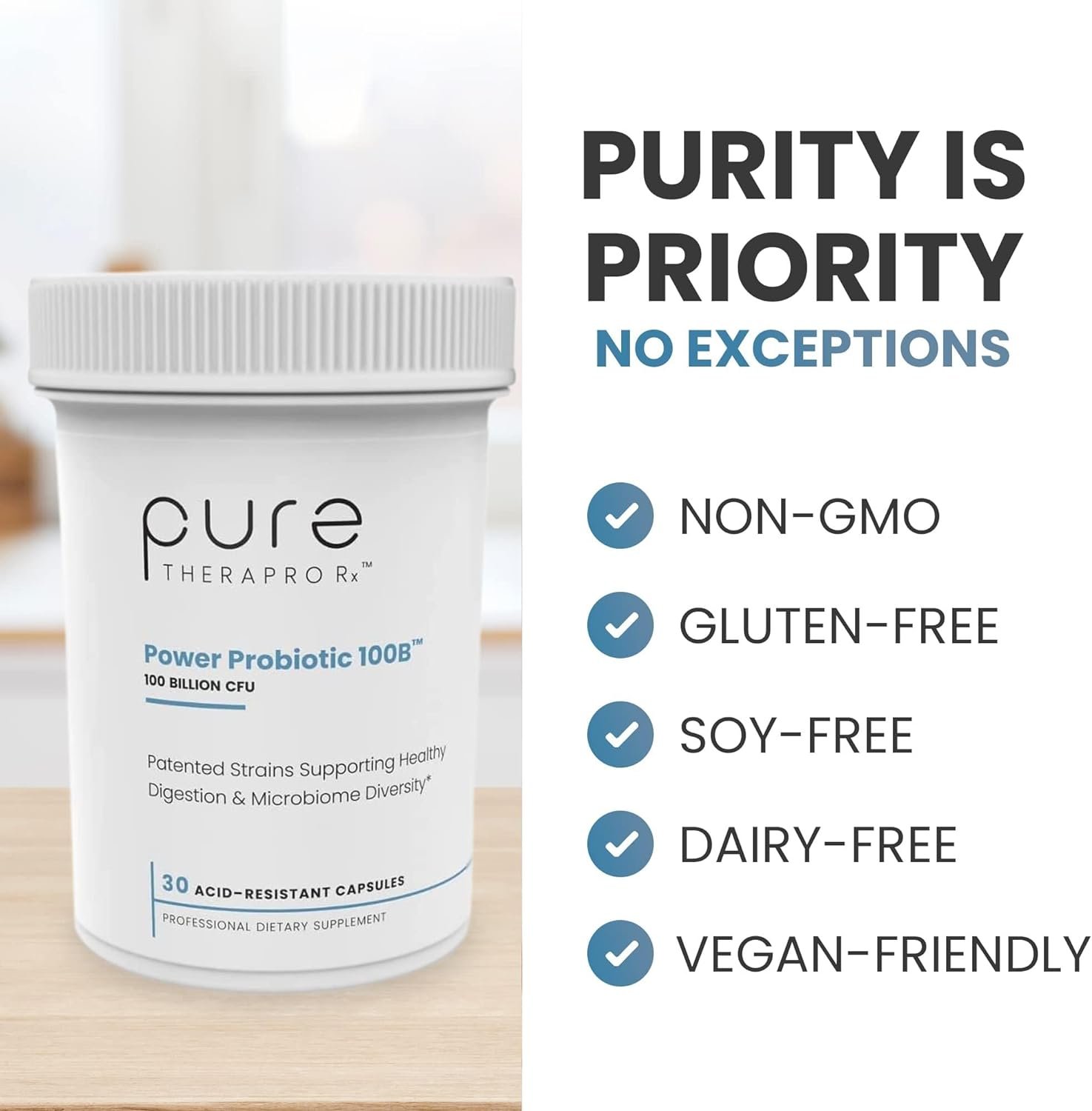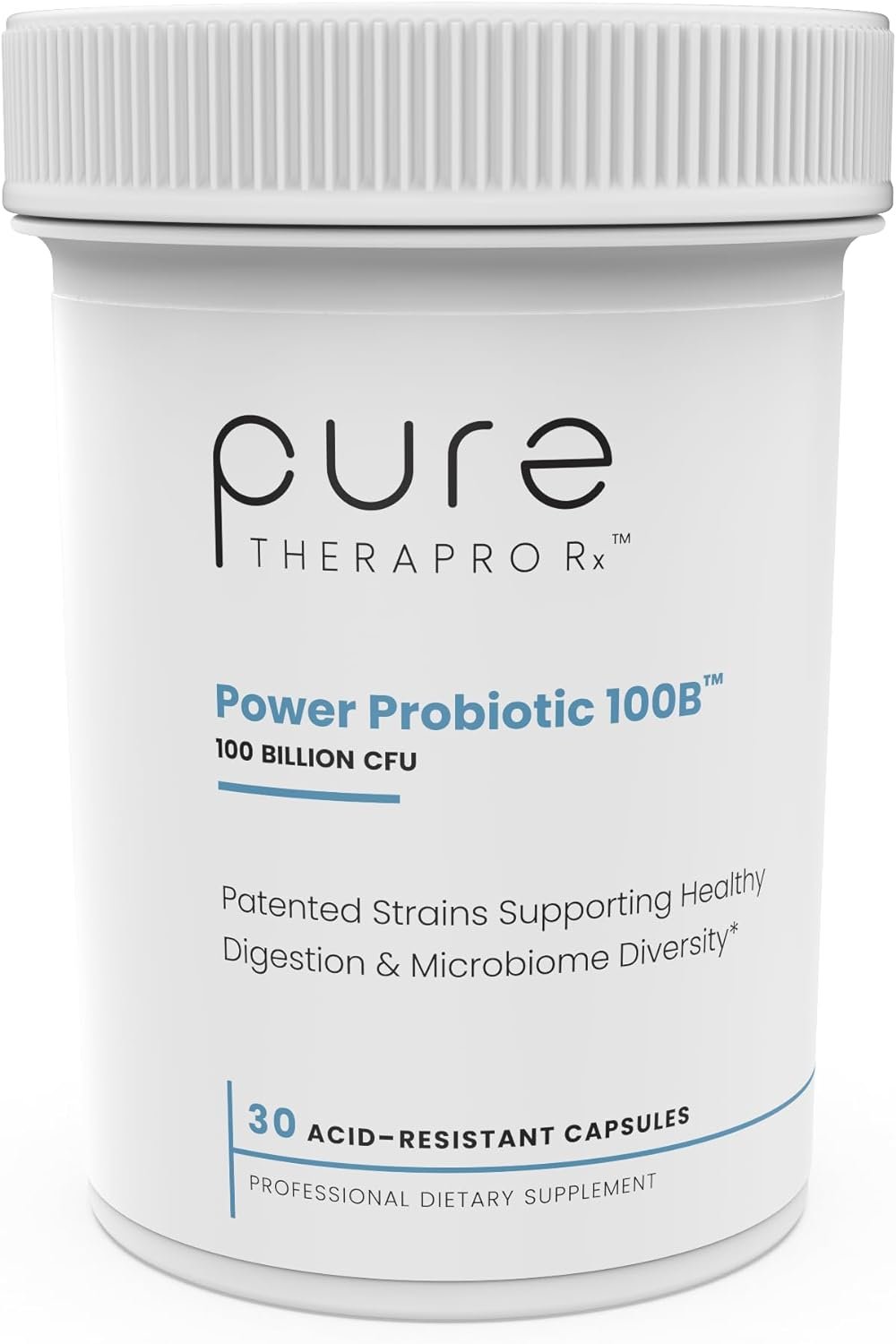 IMMUNE & DIGESTIVE SUPPORT: Power Probiotic 100B from Pure TheraPro Rx is a 4-strain probiotic supplement containing 100 Billion CFU of Lactobacillus Plantarum, Bifidobacterium Longum, and other beneficial bacteria to promote a healthy balance of gut flora. Take 1 capsule daily for a full 30-day supply of digestive and immune support.