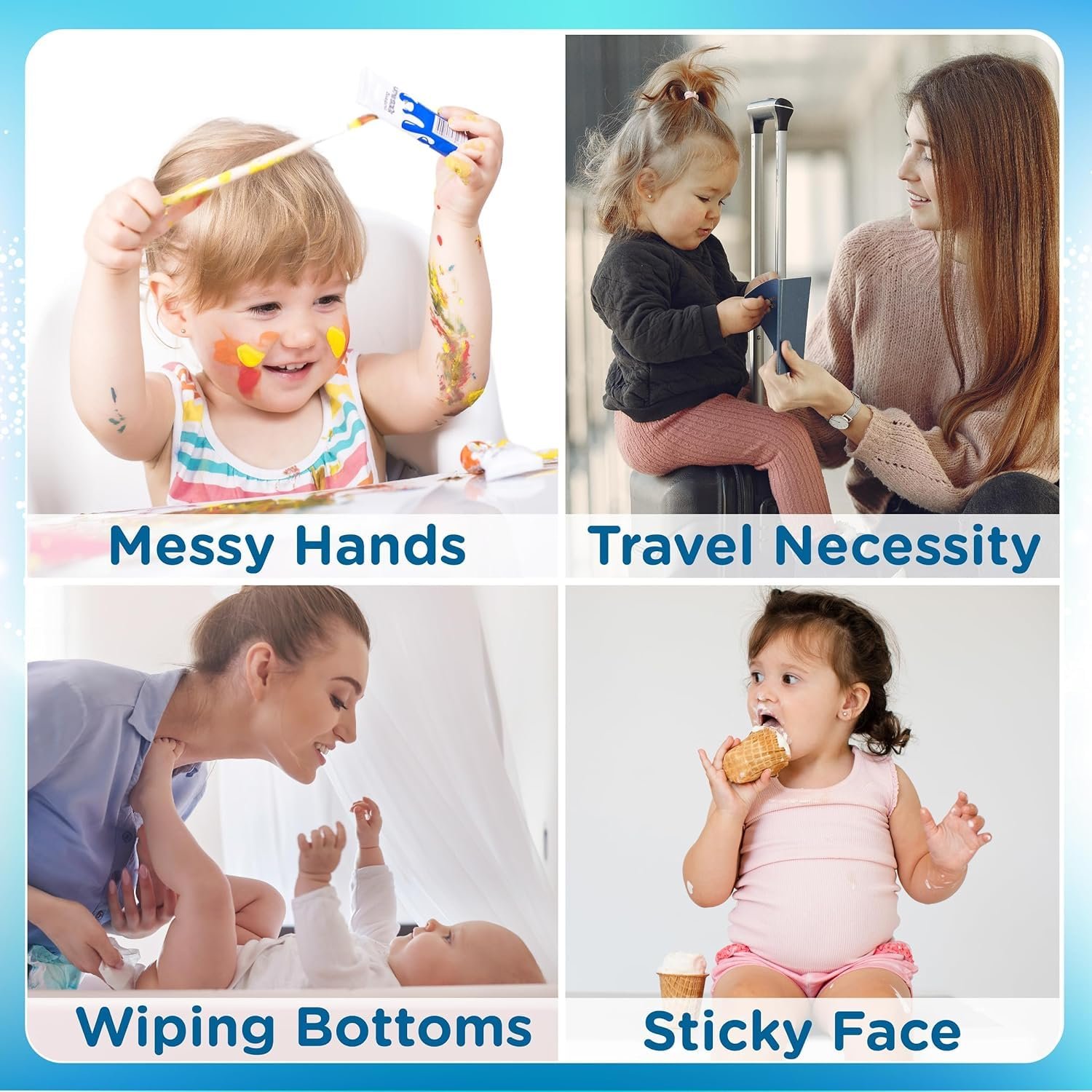 RESEALABLE PACKAGING FOR NON STOP FRESHNESS: Our baby wipes come in a convenient and resealable packaging, keeping each wipe fresh and ready for use whenever you need it, making diaper changes and on-the-go cleanups a breeze.