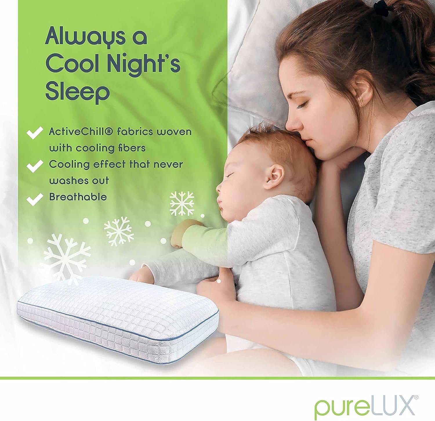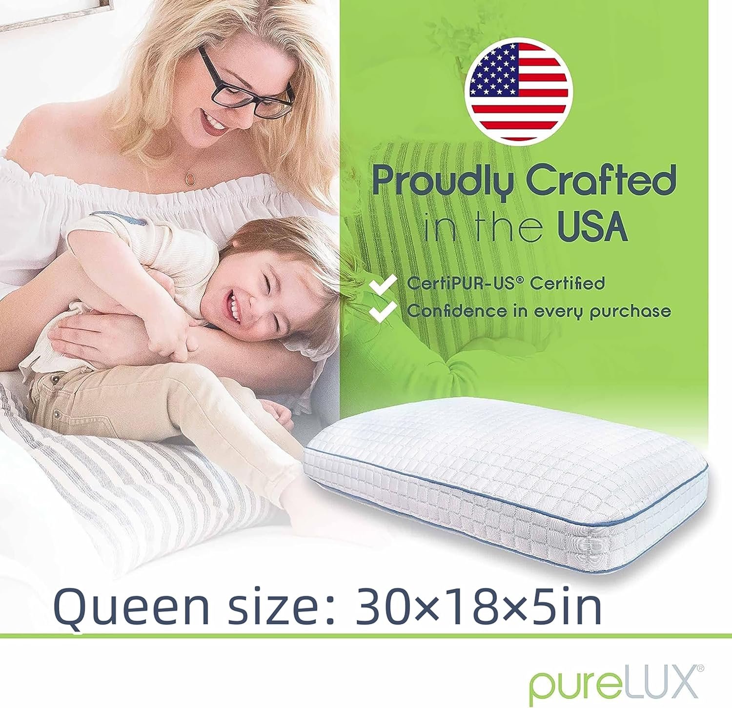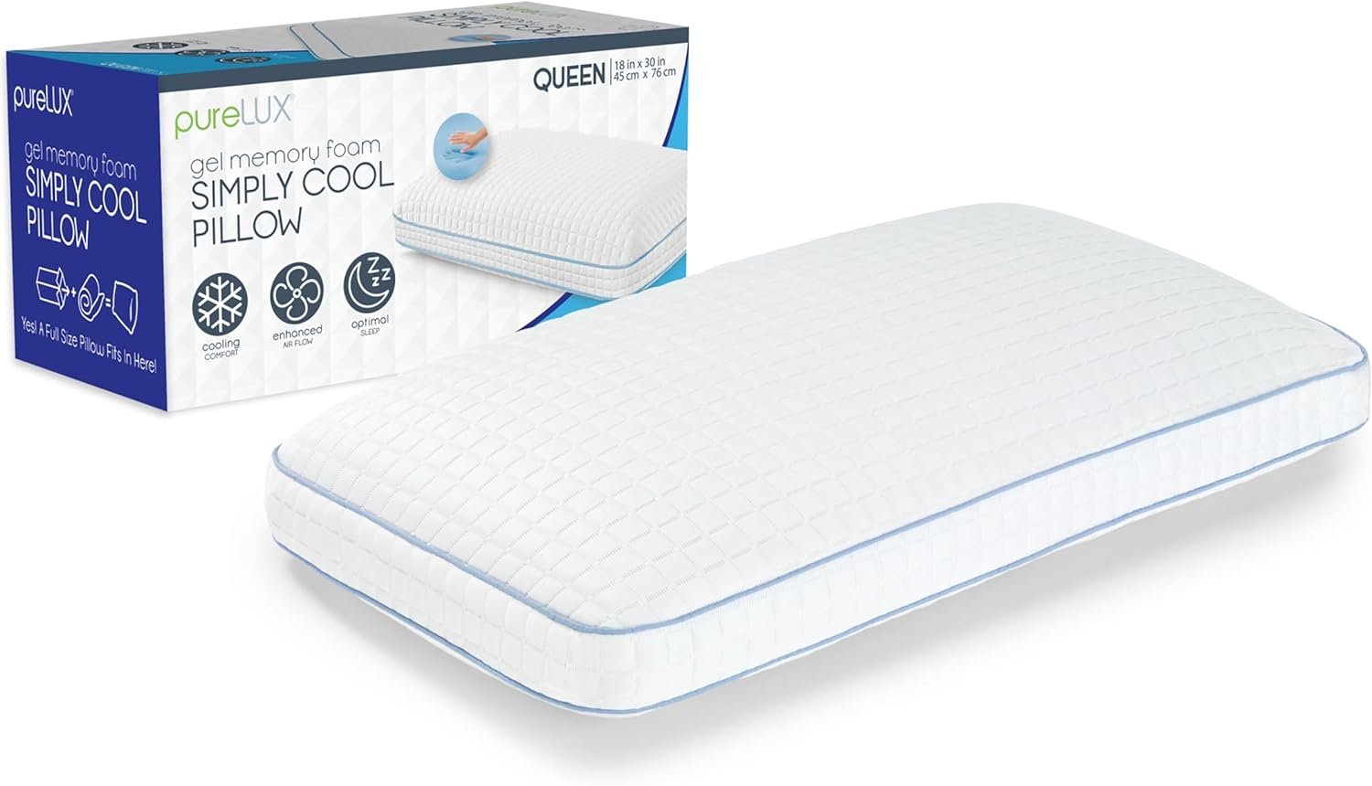 PüreLUX Simply Cool Gel Memory Foam Pillow, Queen 18″ x 30″ Medium Memory Foam