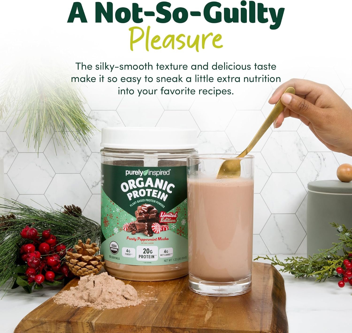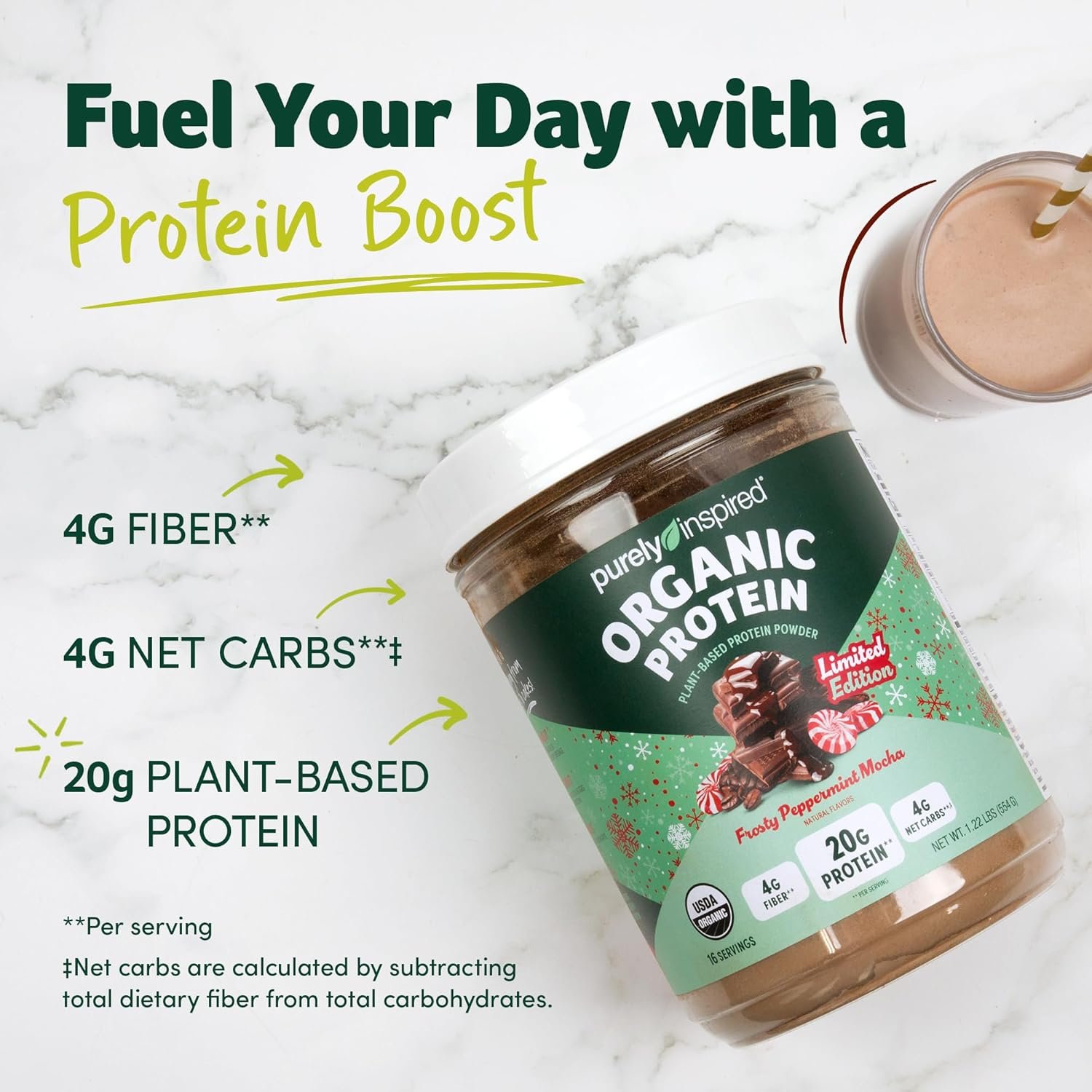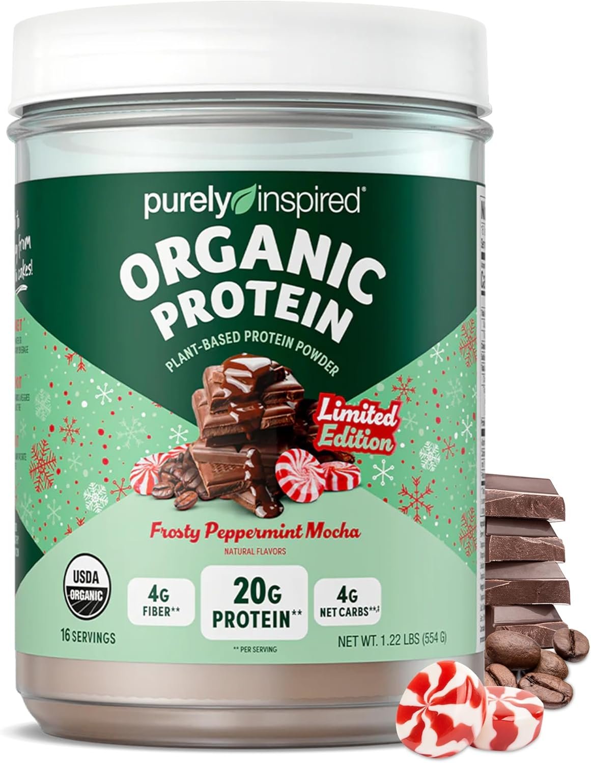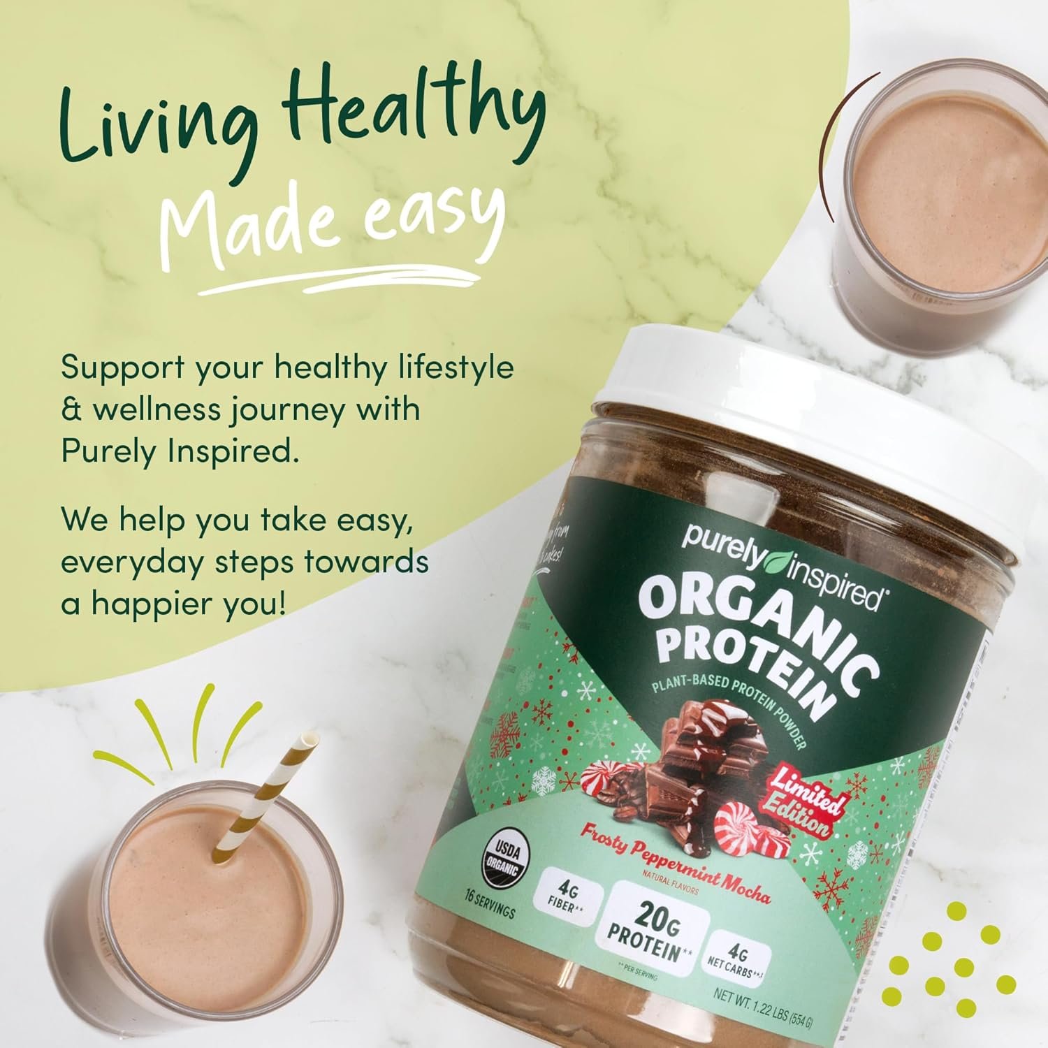 Power Up Your Day with a Protein Boost: Purely Inspired Organic Protein is jam-packed with 20 grams of plant protein per serving. Enjoy the taste and benefits crafted to help you thrive every day. Frosty Peppermint Mocha flavor. 16 servings per container.