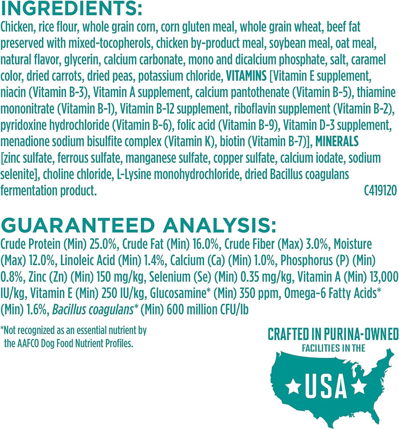 Real chicken is the first ingredient in our high protein dog food, which includes natural glucosamine sources for joint health