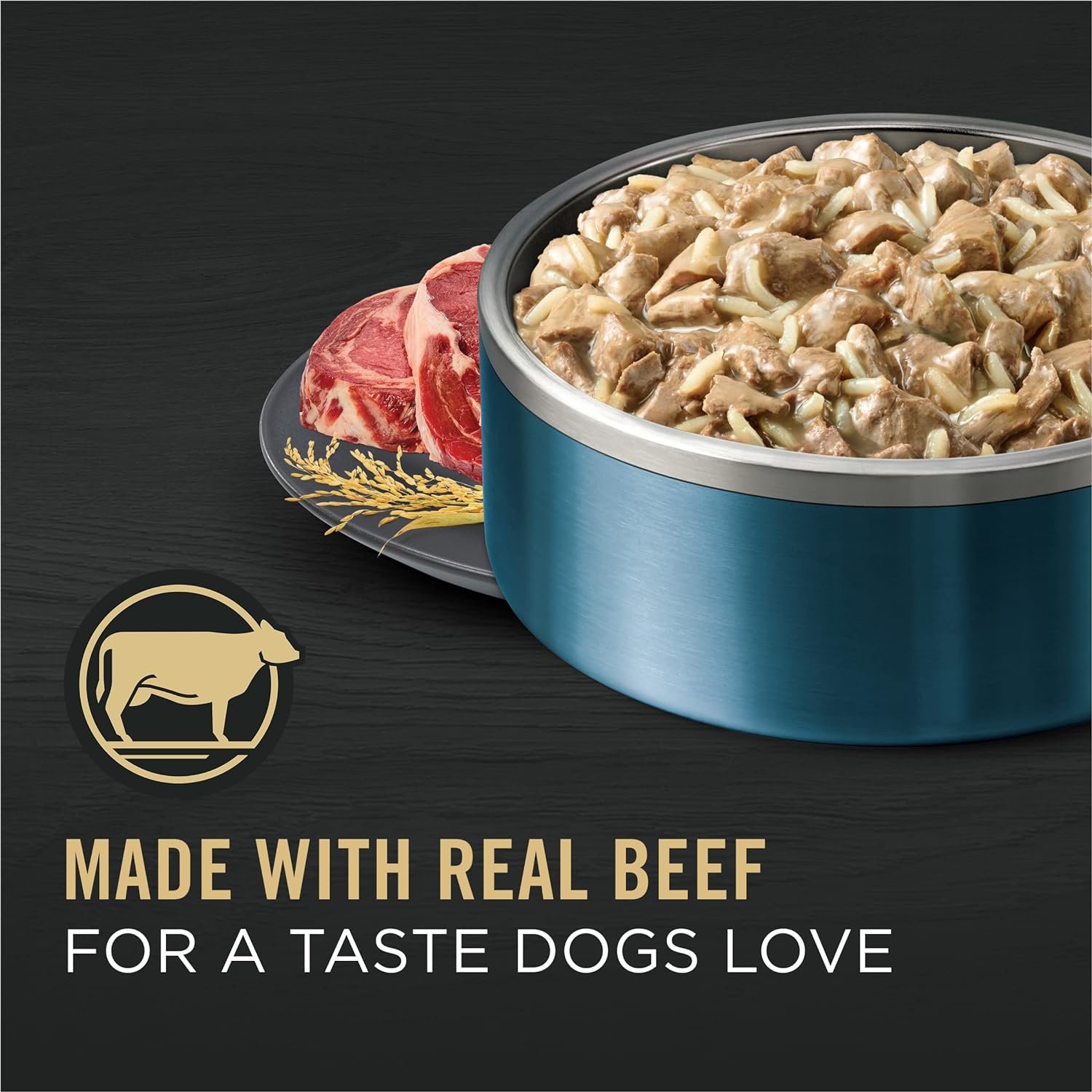 Large breed dog food made with real beef for a taste dogs love and includes calcium and phosphorus for strong bones and teeth