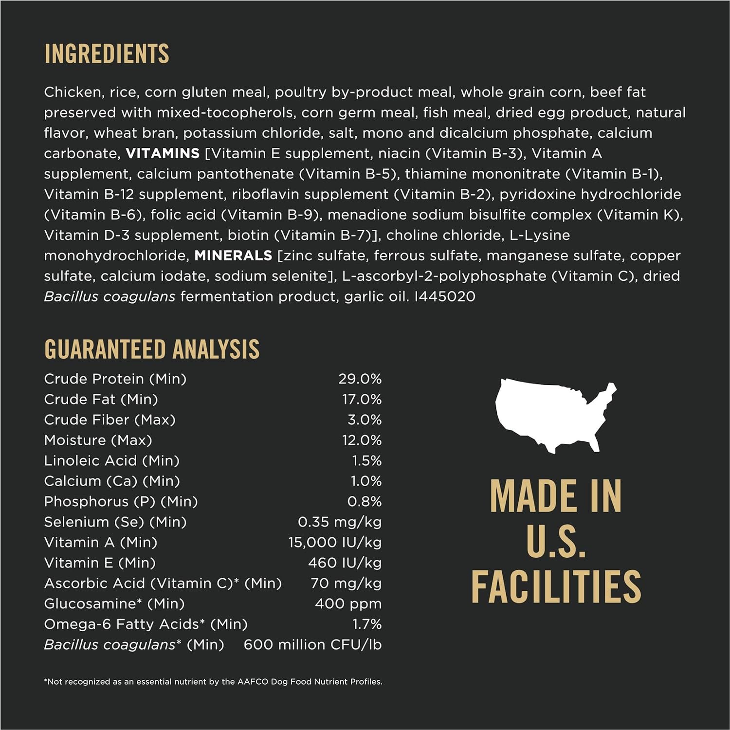Give your small dog specialized nutrition with a taste he will love with Purina Pro Plan Brand Dog Food Small Breed Chicken and Rice Formula adult dry dog food. Real chicken helps provide protein, which is an essential building block within your dog’s body. Including chicken as the first ingredient, this formula is high in protein to meet the unique needs of your active small dog. This super premium dog food features bite-sized kibble that’s nutrient dense to meet your dog’s needs, and the natural prebiotic fiber sourced from wheat bran helps to promote his digestive health. You can enjoy daily walks and playtime in the backyard when you know that the calcium, phosphorus and other minerals in this kibble help to maintain his strong teeth and bones. We also fortify this small breed dog food with guaranteed live probiotics for digestive and immune health. Watch as he enjoys every crunchy bite of this Purina Pro Plan SPECIALIZED formula designed to meet his nutritional needs.