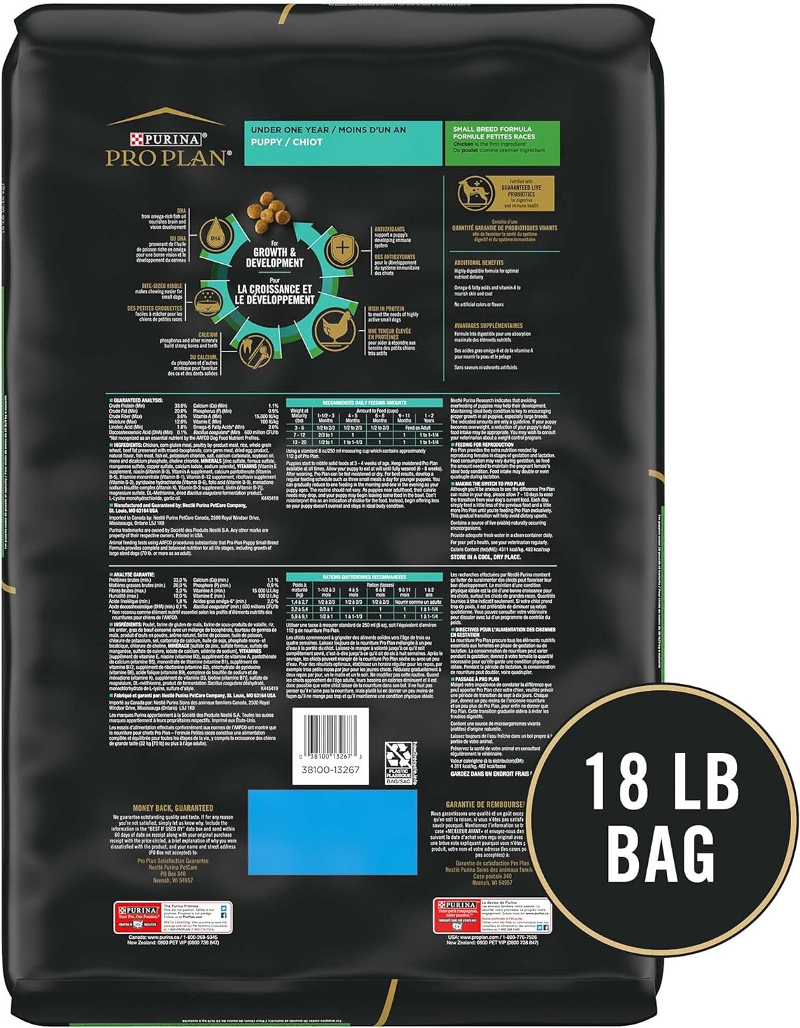 Get your puppy’s life started out right with Purina Pro Plan Brand Dog Food Puppy Small Breed Chicken and Rice Formula dry puppy food. This puppy kibble is high in protein, including chicken as the first ingredient, to meet the needs of highly active small dogs. With no artificial colors or flavors, every ingredient is carefully selected for a specific nutritional or functional purpose, giving your puppy specialized nutrition to meet his needs during the early stages of life. With its bite-sized kibble, this puppy dog food helps make chewing easier for your small dog, and the highly digestible puppy food formula promotes nutrient availability and absorption so your puppy can get the most out of every bite. Real poultry in this small breed puppy food helps provide for your dog’s protein needs. Make this super-premium Purina dry puppy food part of your small breed companion’s daily diet, and keep him wriggling with happiness.