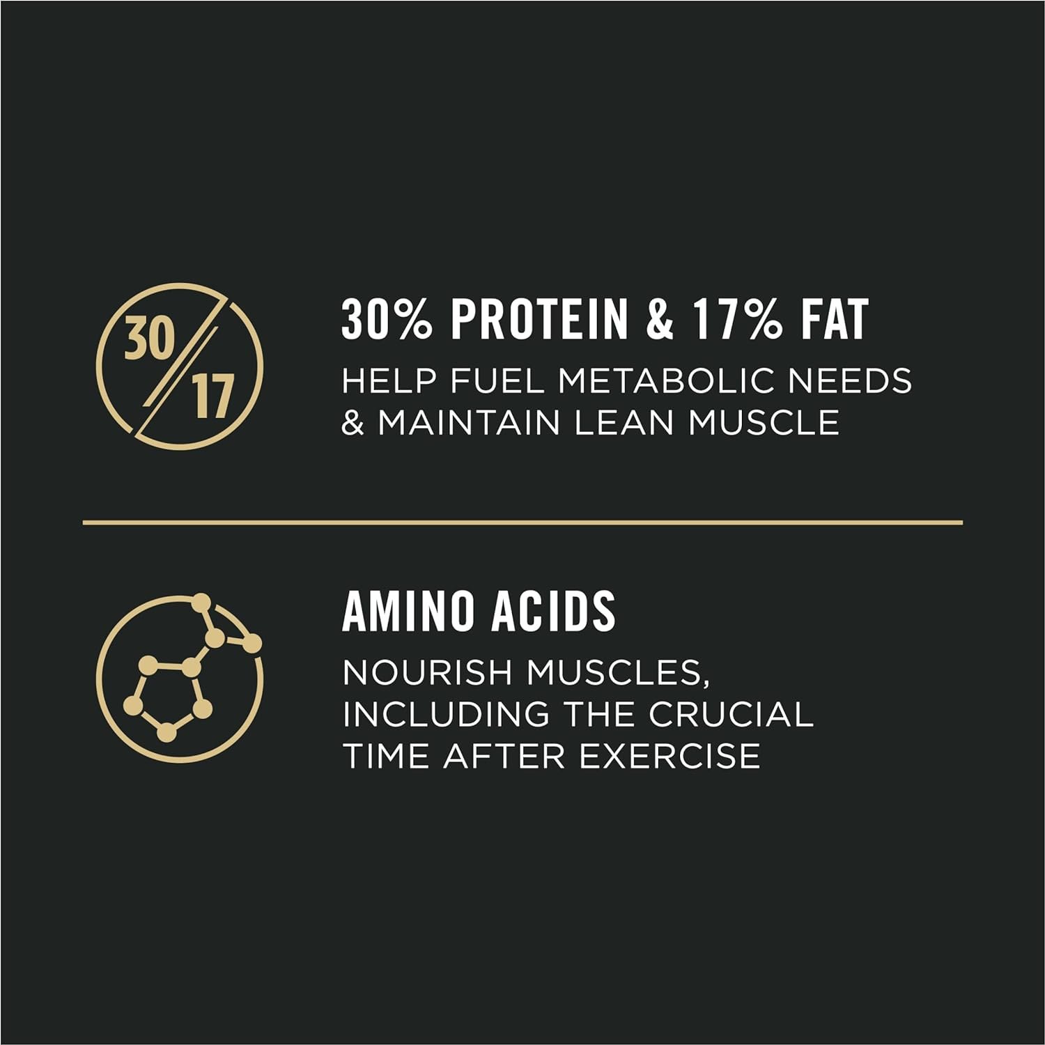 Purina Sport dog food with 30 percent protein and 17 percent fat to help fuel metabolic needs and maintain lean muscle