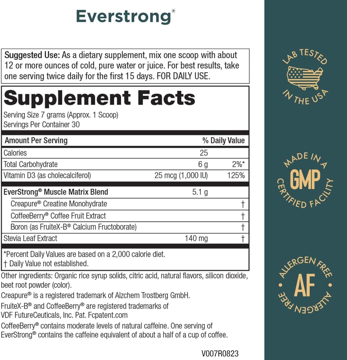 ✔ THE ELITE STRENGTH AND ENERGY FORMULA: EverStrong is built with Creatine, an extensively studied supplement in sport nutrition. We also go beyond creatine, adding a mixture of important co-factors to fuel your day, no matter what your activity level and goals.