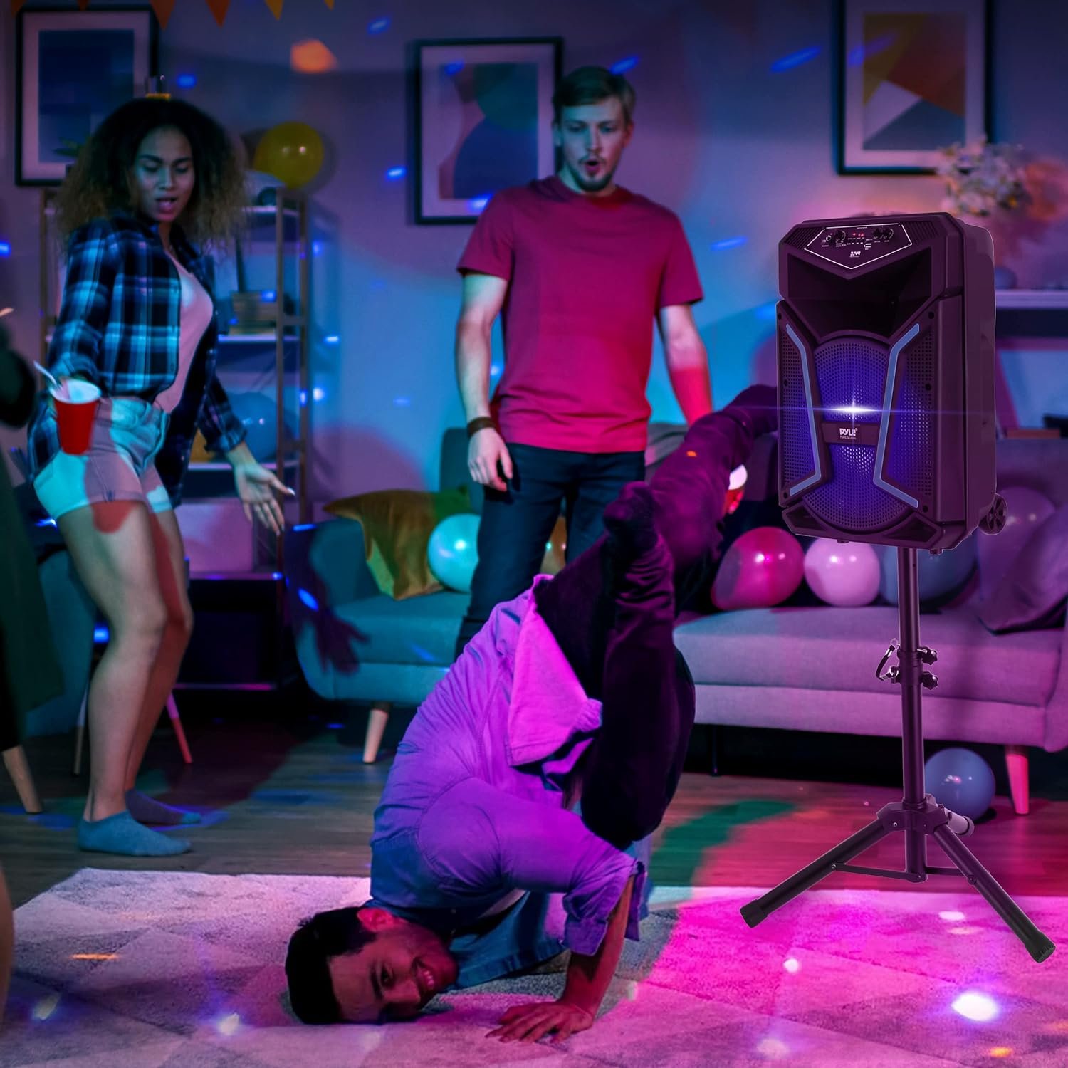 Bluetooth PA speaker & microphone system – portable karaoke speaker with wired mic, built-in LED party lights, FM radio, MP3/USB, speaker stand (12’’ subwoofer, 800 Watt max) features: portable PA speaker system high-powered loudspeaker designed> wired microphone for home karaoke style Fun Bluetooth wireless music streaming ability> multi-color flashing LED party lights> FM radio with digital LCD display> built-in rechargeable battery> ported enclosure for extended bass full range stereo sound reproduction> sleek & stylish speaker cabinet housing> connect & stream Audio from external devices> MP3 audio file playback> USB flash memory Reader> aux (3. 5mm) Input jack 1/4’’ (6. 5mm) microphone input> low battery level LED indicator Light rugged & durable molded cabinet Design convenient rolling wheels & extending carry handle used for public gatherings, crowd control, karaoke vocals, stage performances> for indoor/ outdoor use bluetooth wireless streaming: built-in Bluetooth for wireless music streaming> simple & hassle-free Pairing> works with All of today’s latest devices> smartphones, tablets, Laptops, Computers, etc. Bluetooth Version: 5. 0 Bluetooth Network Name: ‘pyleusa’ wireless range: up to 32’ ft what’s in the box: PA speaker system speaker stand wired microphone> remote controller> power adapter technical Specs: power output: 800 Watt max> sound system: 12’’ subwoofer, 1’’ tweeter> wired mic cable length: 9. 8’ ft. speaker stand height: 3. 2’ ft. impedance: 4 ohm frequency response: 55-20kHz> S/N ratio: 60dB +/-3db SPL: 94dB (1W/m) T. H. D. : digital audio file support: mp3 maximum USB Flash support: 32gb mic nominal current drain: battery life: up to 2+ hours> battery operated remote: (1) x CR-2025 Button Cell, included> PA speaker battery type: 3. 7V Li-ion – 3000mah speaker power supply: 120/240V, Switchable (5V/2a) total speaker size (L x W x H): 13. 5’’ x 11. 6’’ x 21. 3’’ -inches> Sold as: 1 weight: 18. 78 lbs.