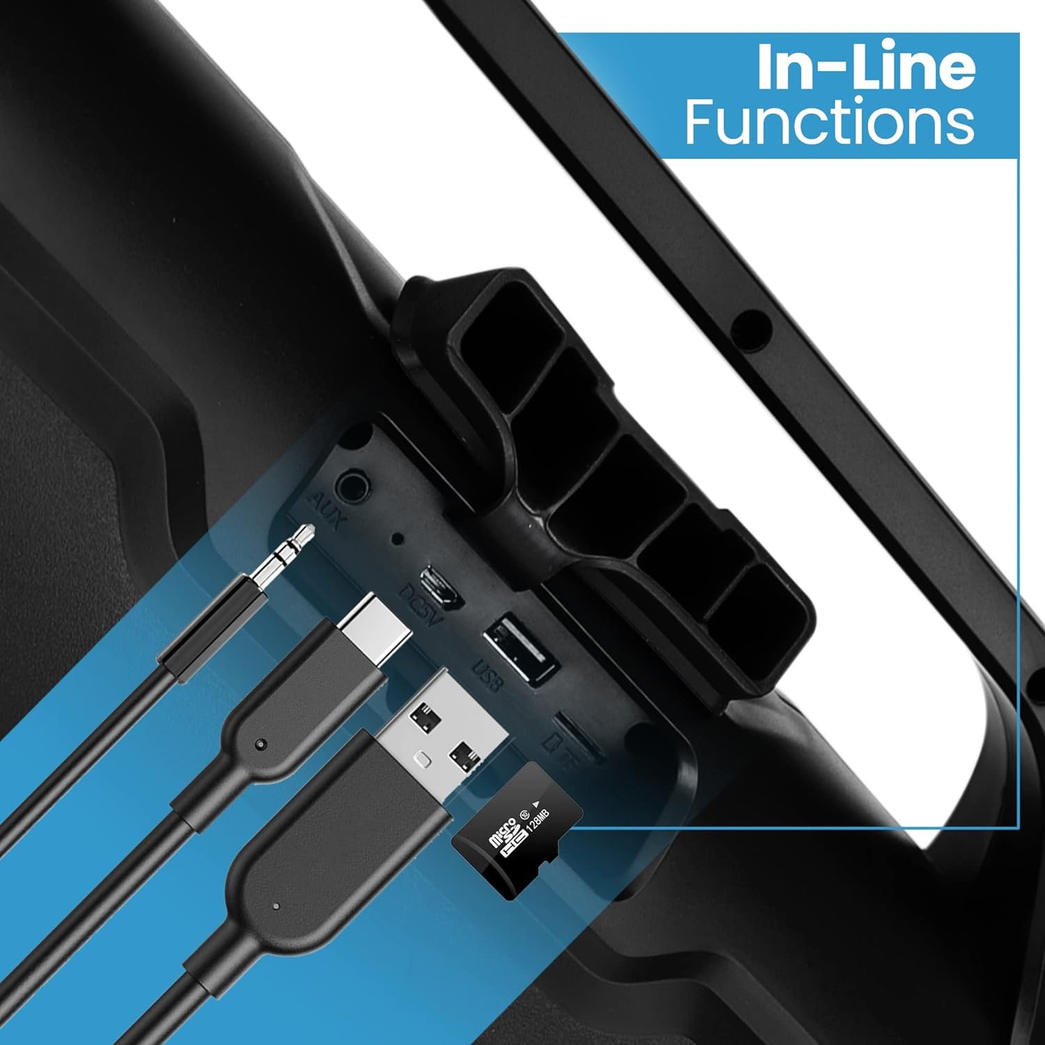 RECHARGEABLE BATTERY: Pyle boombox bluetooth speaker is great for karaoke, stage performances, & crowd control. It is equipped w/ a built-in 7. 4V Li-iOn rechargeable battery w/ 4-6 hours charge time and carry handle so you can take it anywhere you go
