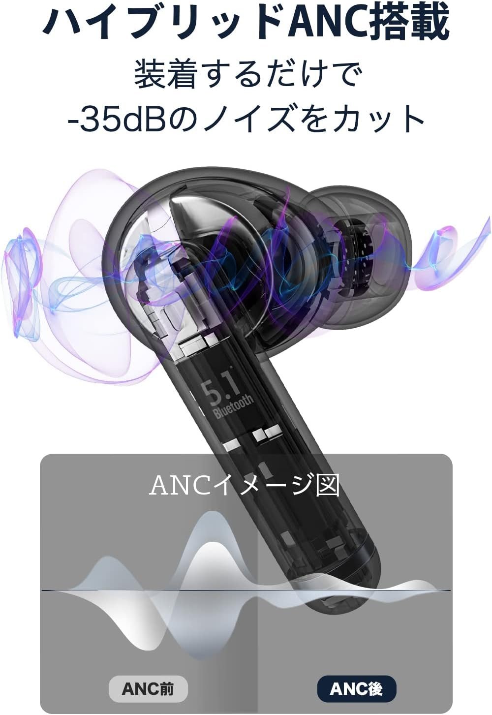 【Active Noise Cancellation】 With hybrid ANC technology to reduce noise to 35dB, this noise cancelling bluetooth earbuds can shut out all distractions whether you’re enjoying your favorite music, watching a movie, or playing games. You can focus on what you want.