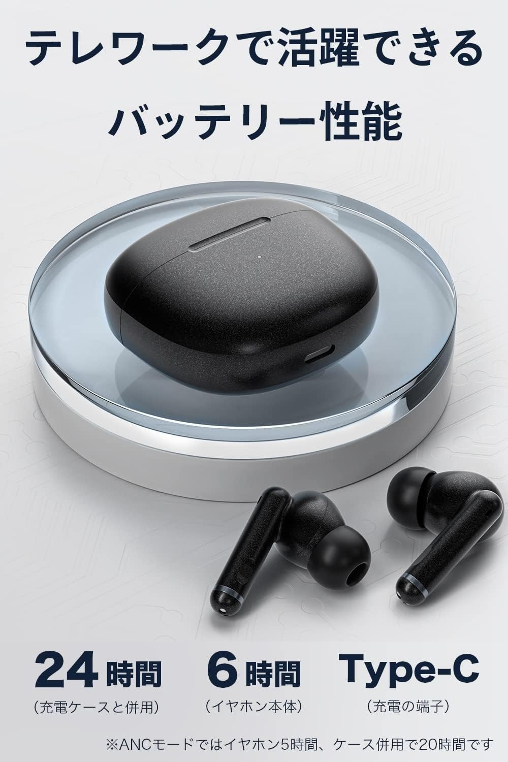 Battery Life: 6 hours(ANC off), 5 hours(ANC on), 24 hours playtime with charging case