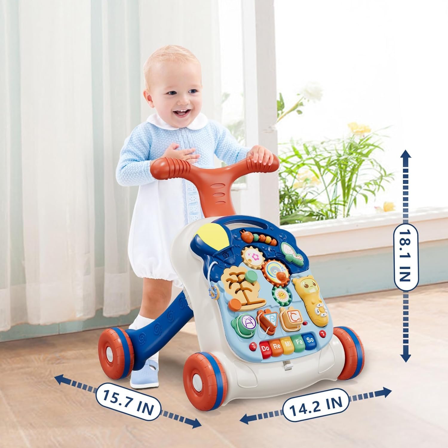 [Safe Material and Perfect Gift]: Push walker for baby boys made of safe ABS material, non-toxic, smooth edges without burrs. Baby learning walker could exercise babies balance ability, cultivate their imagination, hand and brain coordination ability. Suitable as gifts for babies, toddlers, infants and preschool boys and girls.