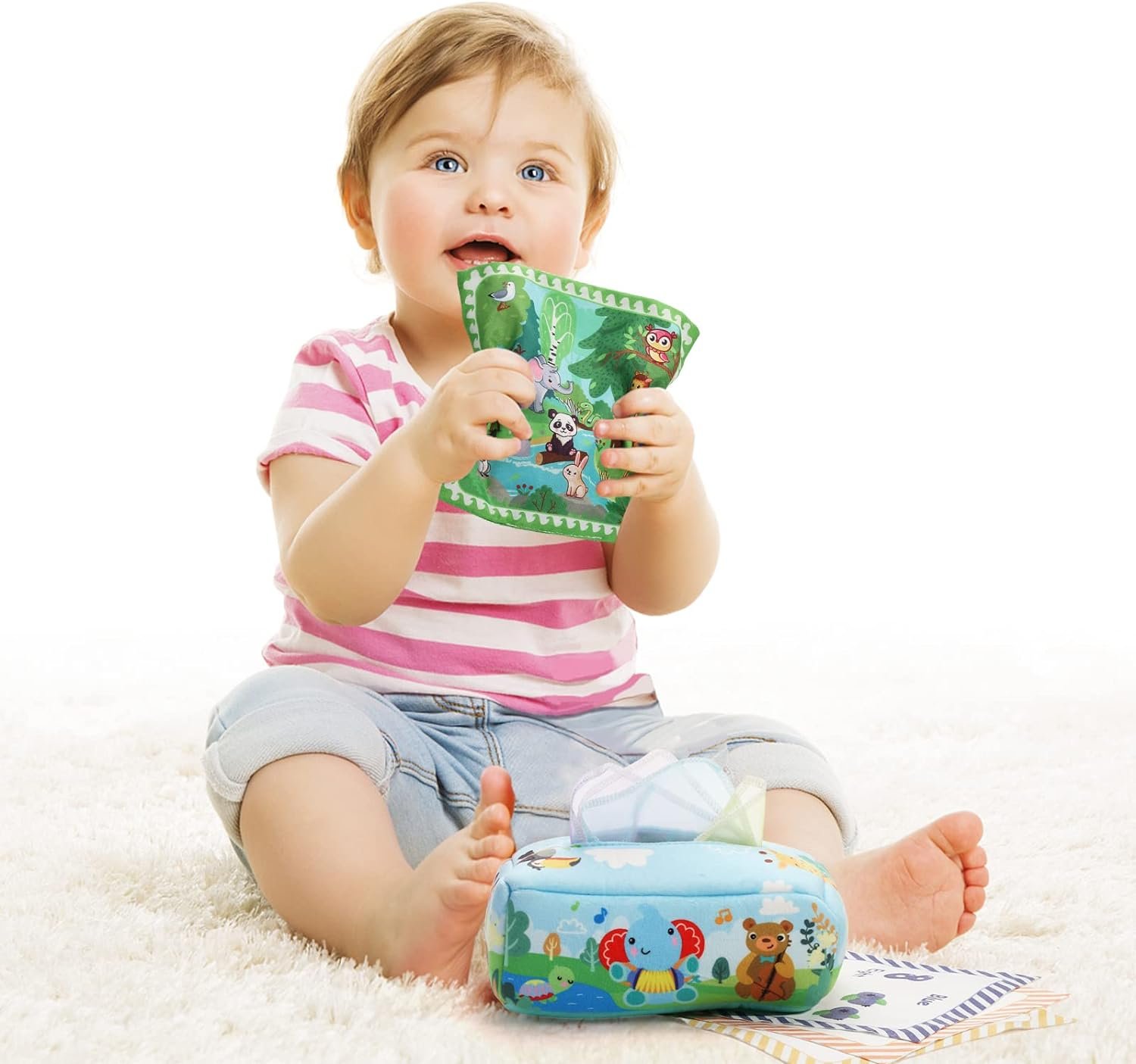 [Laugh, Learn and Play]: Crinkle paper makes a funny voice and touches crackly. Every time babies try to grab the tissue, it responds to babies with the fun of voice, which produces unexpected joy for them, motivates them to crawl and grab things around, and keeps babies exploring the world.
