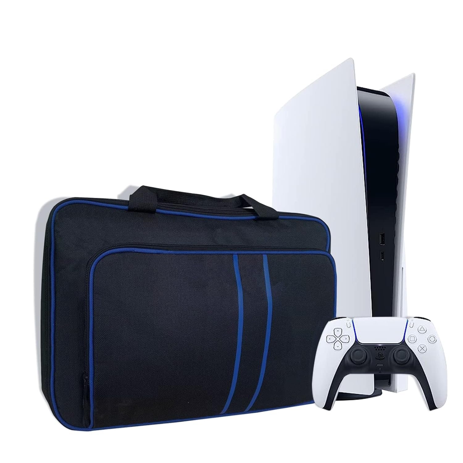 🎮🎮REASONABLE STRUCTURE: This PS5 bag adopts layered design-The main pocket of PS5 carrying case has multiful pockets to store PS5 game cards, PS5 console disk or digital Edition, power cable, HDMI and U.S.B cables, and other accessories can be stowed in the front pocket. There are also two pockets in the front compartment specifically for playstation 5 controller!