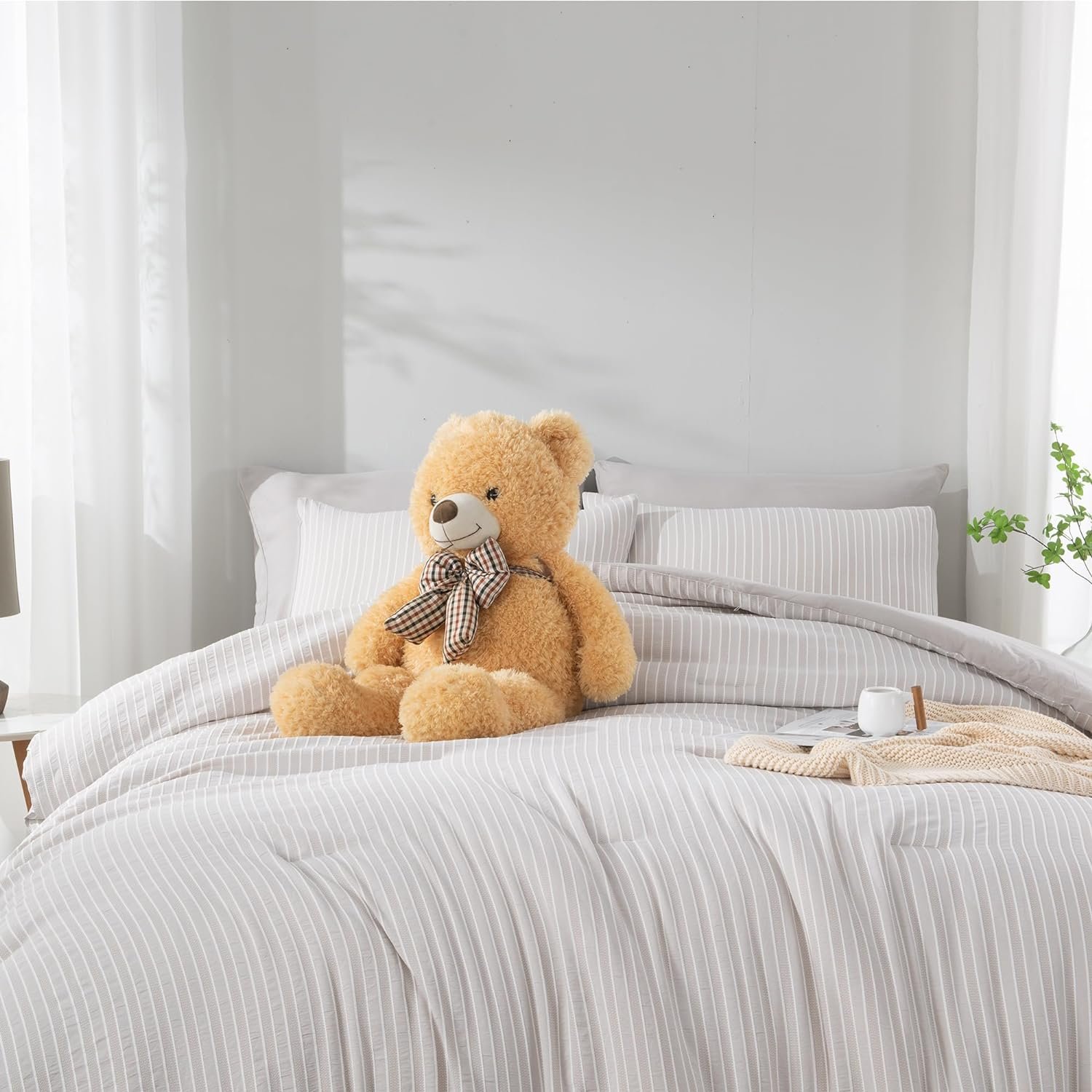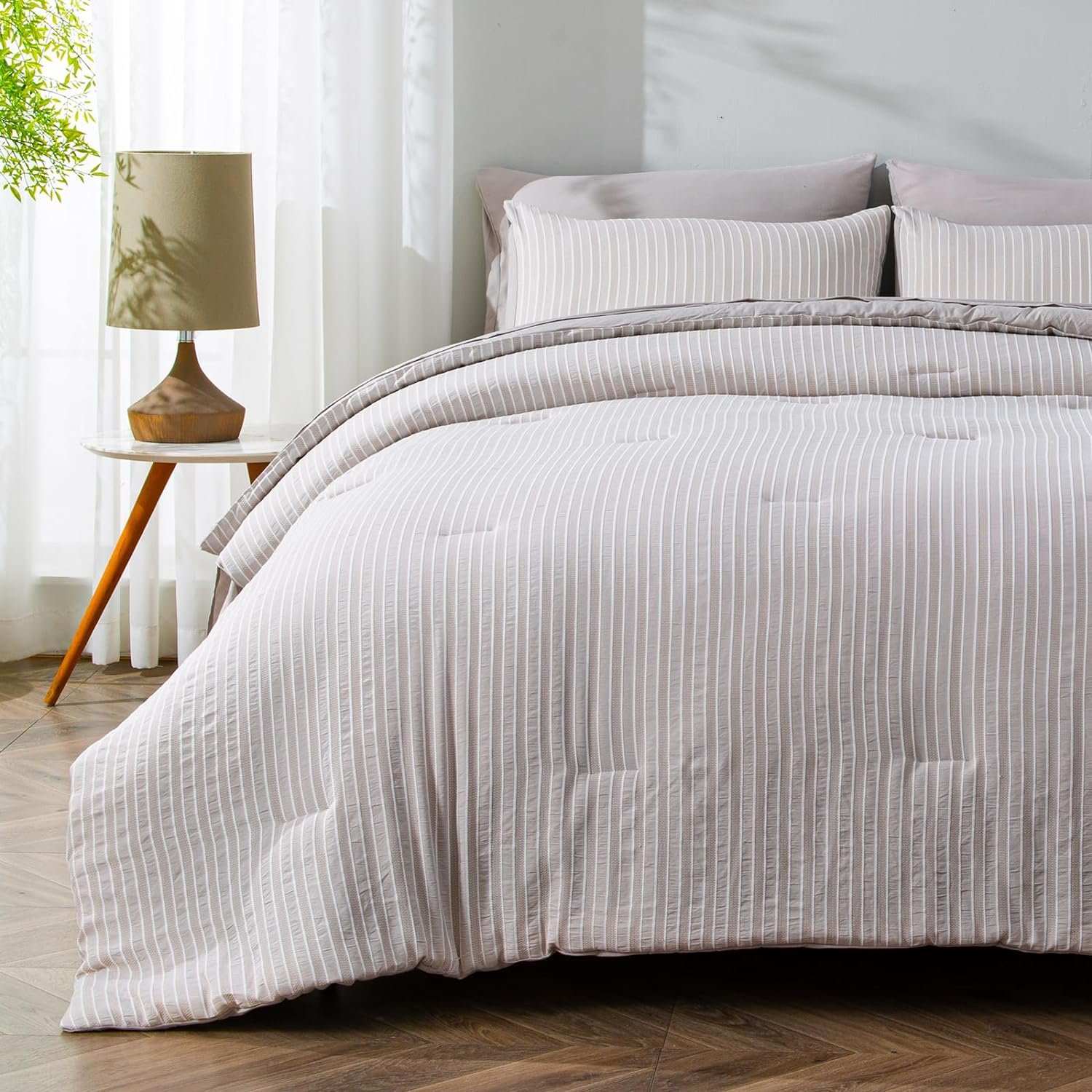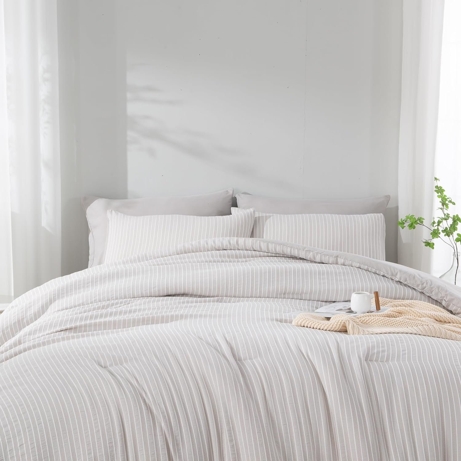 Year-Round Versatility – Our jacquard striped queen bedding set brings comfort and style all year round. With its 7-piece design, it offers protection and coziness in every season, from summer to winter. Perfect for your bedroom, guest room, or holiday retreat, it not only ensures practical comfort but also refreshes your space with a chic look. Elevate your living area with this versatile and stylish grey queen comforter set.