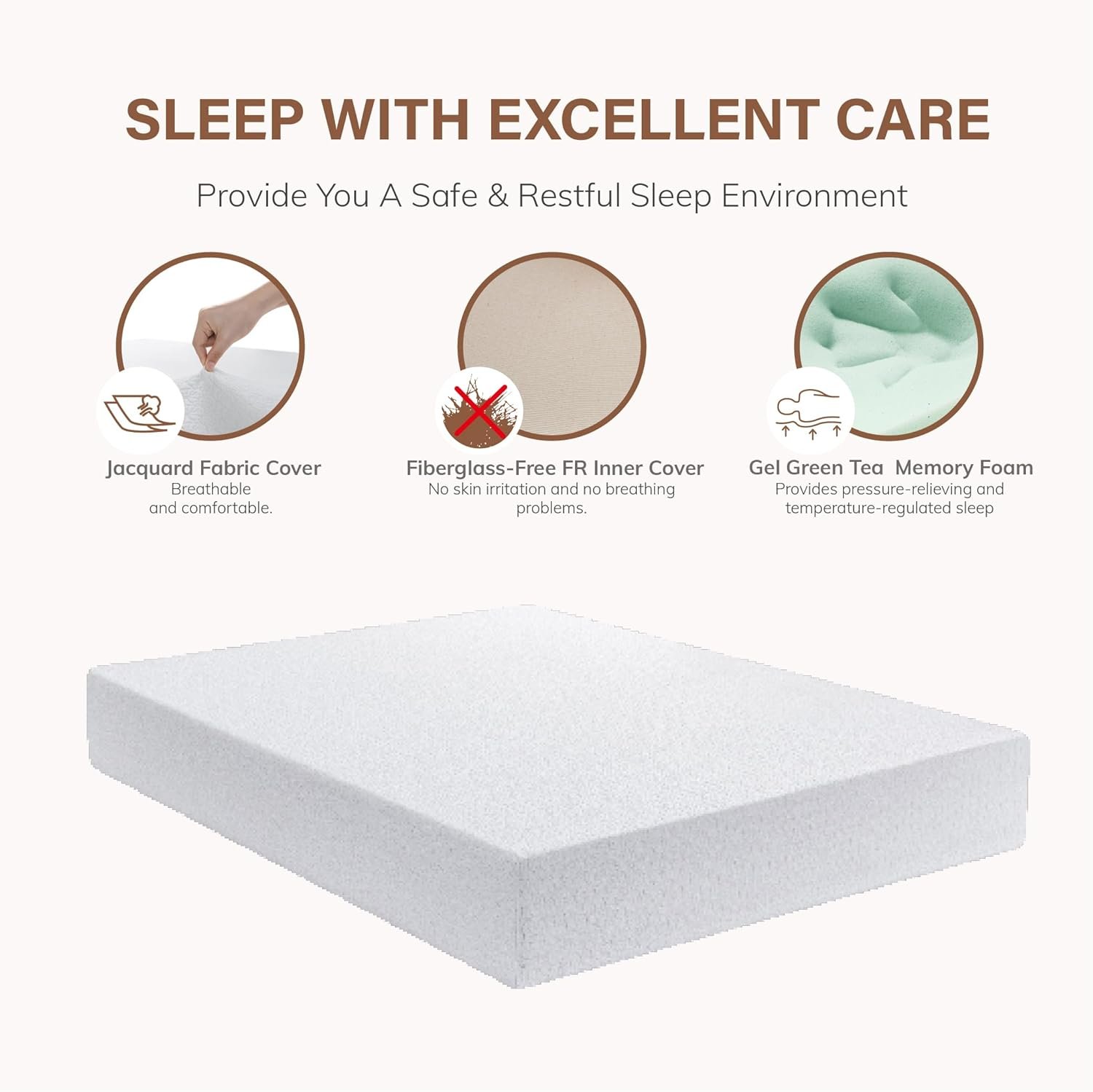 RELIEVE PRESSURE, SLEEP BETTER. Gel Green Tea Memory Foam Mattress