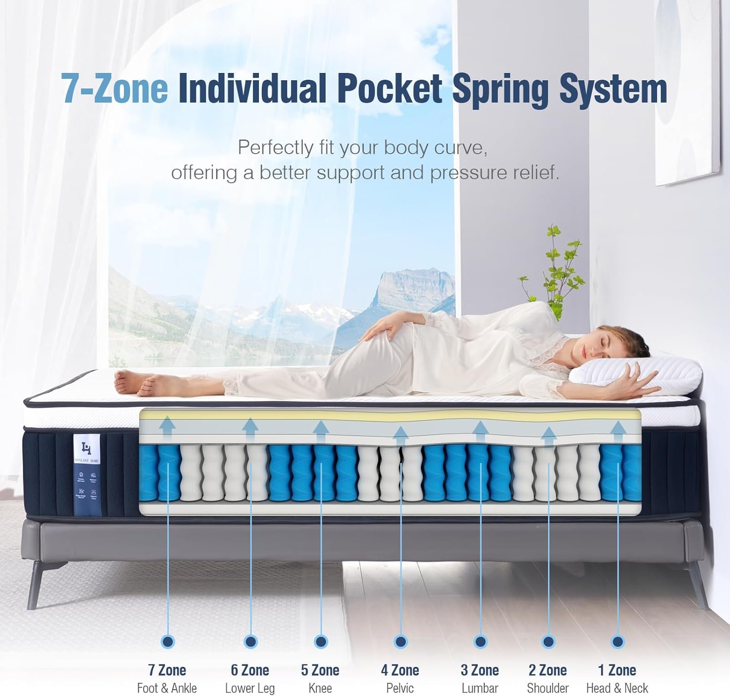 【SKIN FRIENDLY COVER】: This 14 inch queen hybrid mattress in a box is made of breathable and healthy premium knitted fabric, soft to touch & skin-friendly, providing you a medium plush feeling. The knitted dual-layer cover allows the mattress to breath freely, creating a dry, restful sleep, allowing you to enjoy a dreamy sleep.