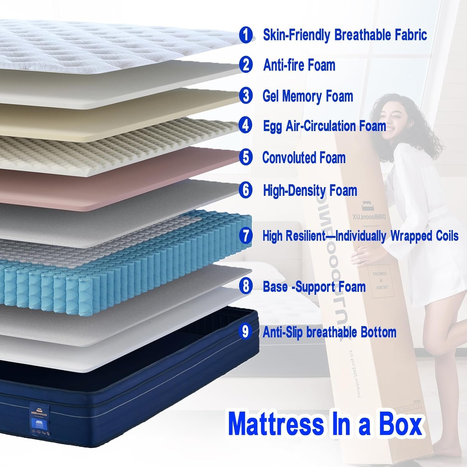 WORRY-FREE ENJOY: DINBooonLUX mattresses come with a 100-night trial and a 10-year warranty. We recommend waiting 72 hours for the mattress to return to its original shape. When opening the mattress, be sure to keep a safe distance as it may swell quickly. For assistance with any issues, please don’t hesitate to contact our customer support team.