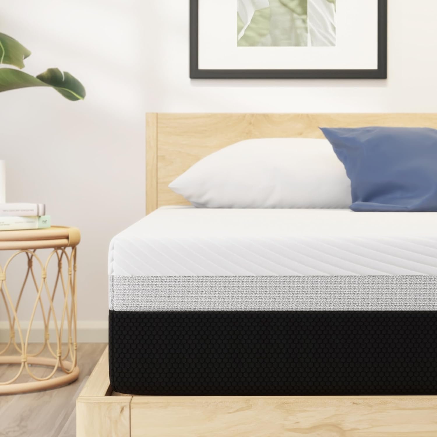 BED FRAME COMPATIBLE – Compatible with a variety of queen bed frames, including traditional box springs, platform beds and adjustable bases. This Hybrid Cool Gel Memory Foam Mattress offers versatility and convenience to suit your preferred setup and can be used with or without a box spring.