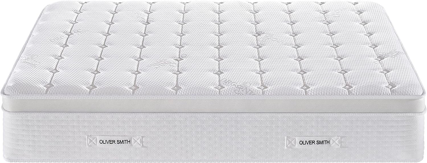 🌟 14-INCH HYBRID COMFORT: Sink into blissful slumber on our 14 inch Hybrid Queen bed mattress by Oliver & Smith Since 1921 made with 5 layers: comfort foam, high-density foam, and pocketed coil spring, seamlessly blending premium cooling foam and responsive spring support. With our exceptional bed Queen size mattress, you can relish pressure relief, ensure uninterrupted sleep, and wake up rejuvenated every morning.