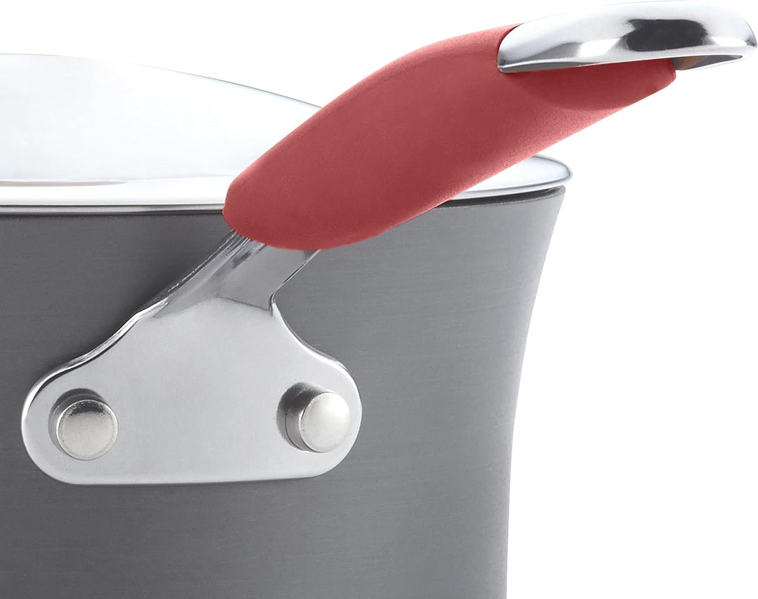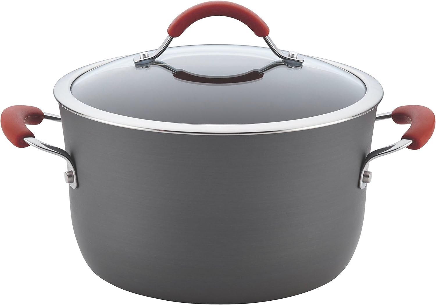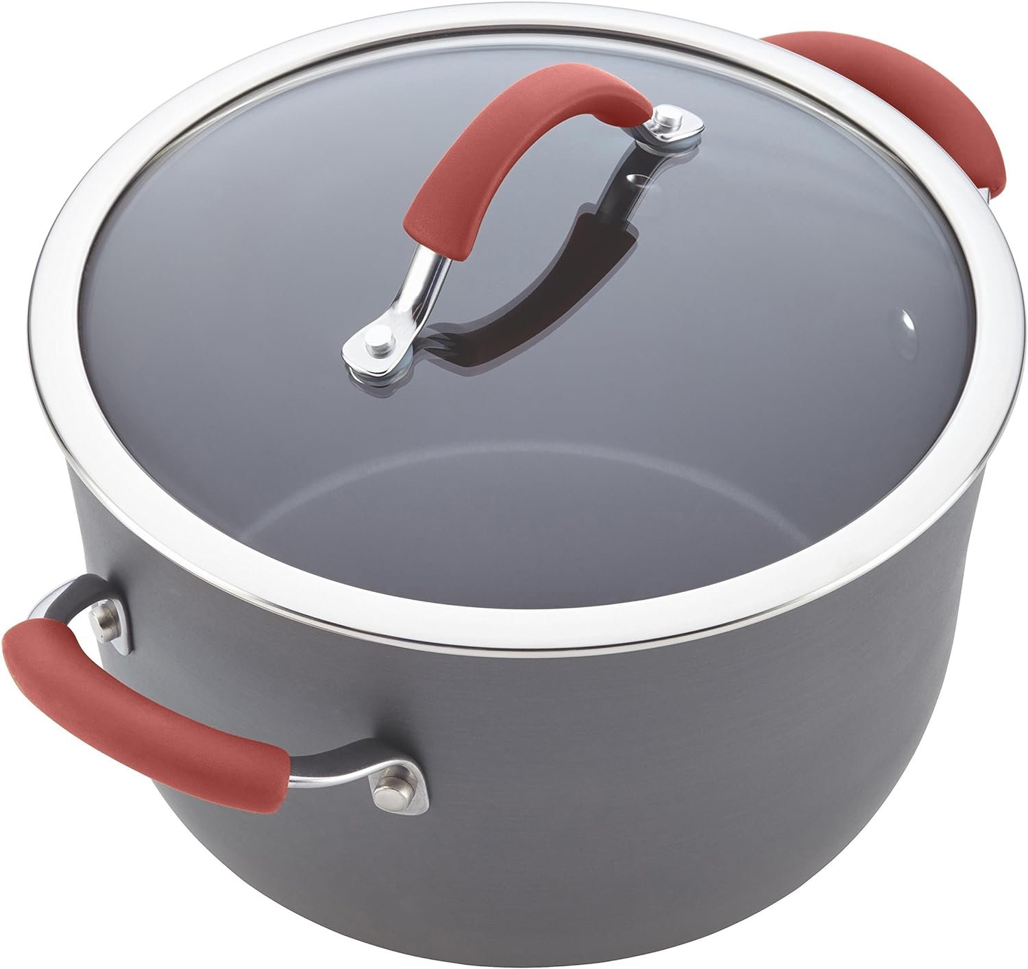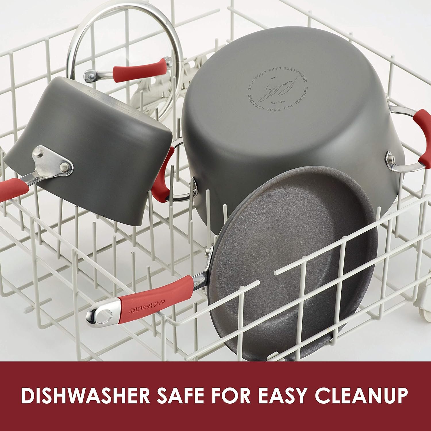 Rachael Ray – 87630 Rachael Ray Cucina Hard Anodized Nonstick Cookware Pots and Pans Set, 12 Piece, Gray with Red Handles