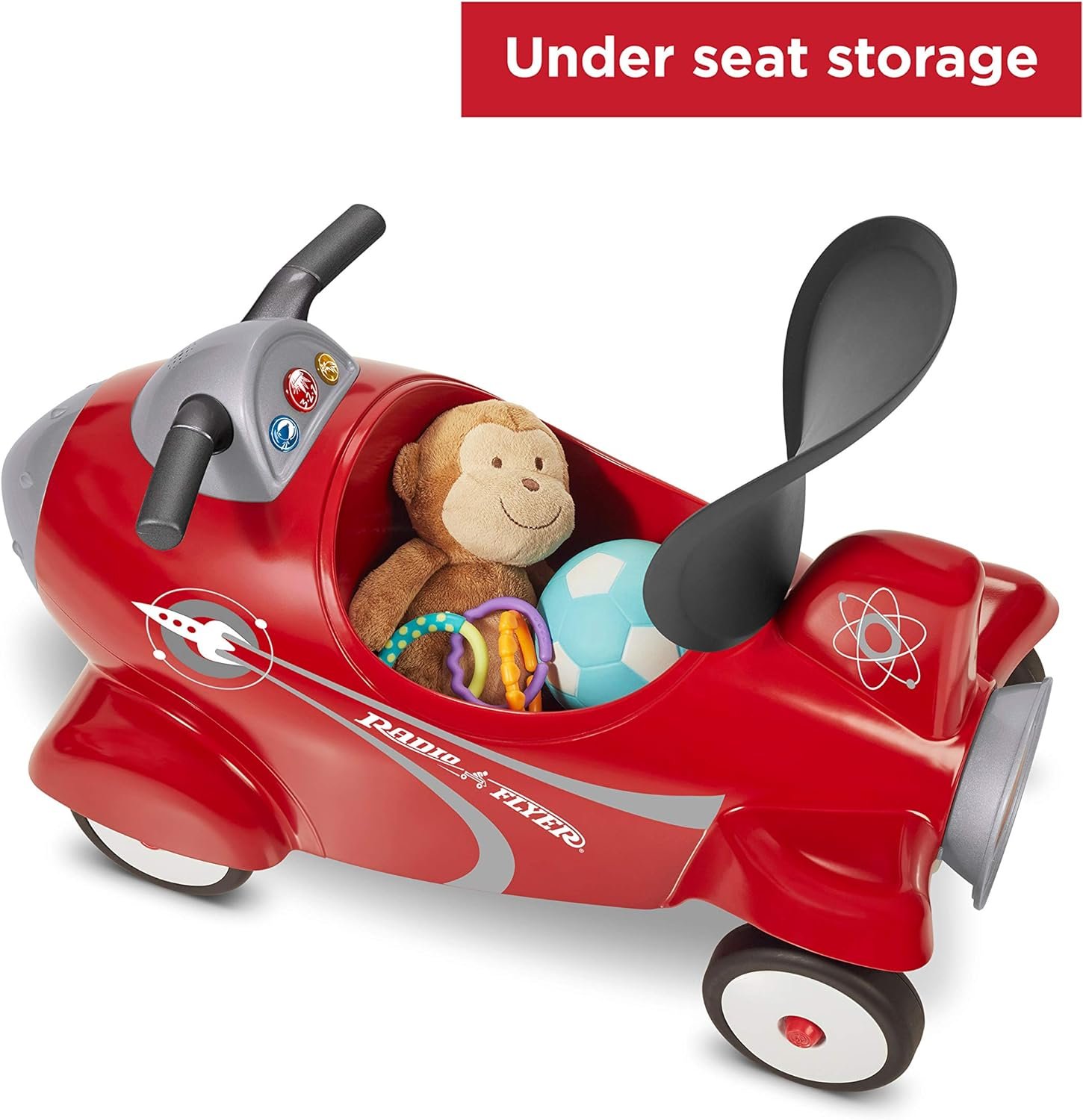 UNDER SEAT STORAGE: The seat flips open for storage, so your child’s favorite toys can join every adventure