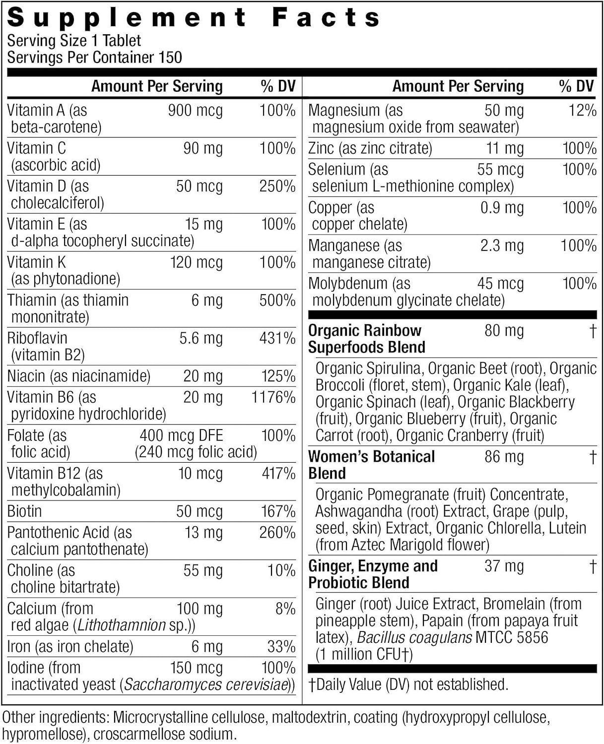 WOMEN’S MULTIVITAMIN: Includes one 150-count bottle of Rainbow Light Women’s One High-Potency Daily Multivitamin, a multivitamin supplement for women that supports whole body health