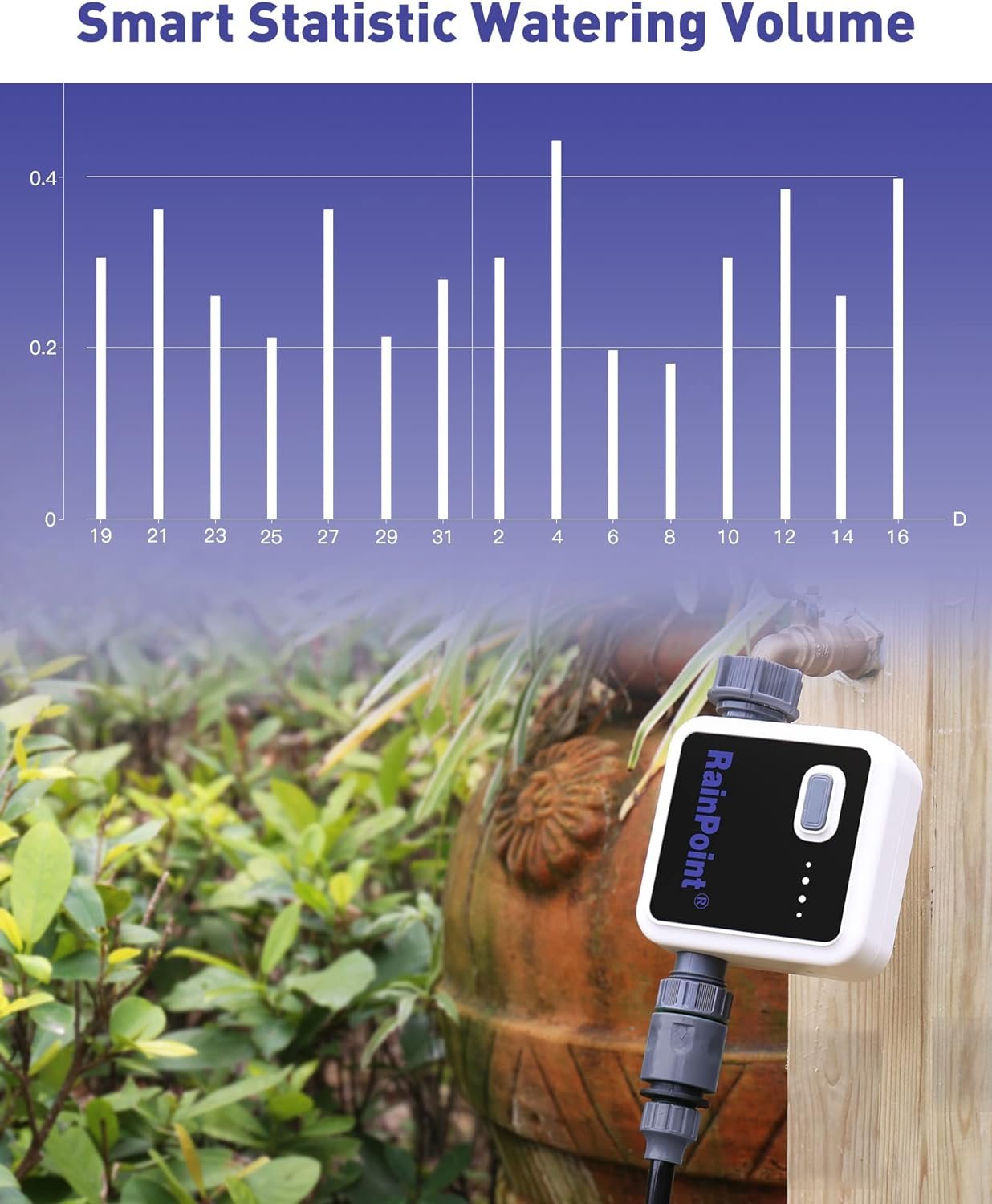 RainPoint is a professional manufacturer of garden irrigation equipment, providing customers with a wide range of irrigation timers with easy-to-use, intuitive features to allow you to optimize water use.