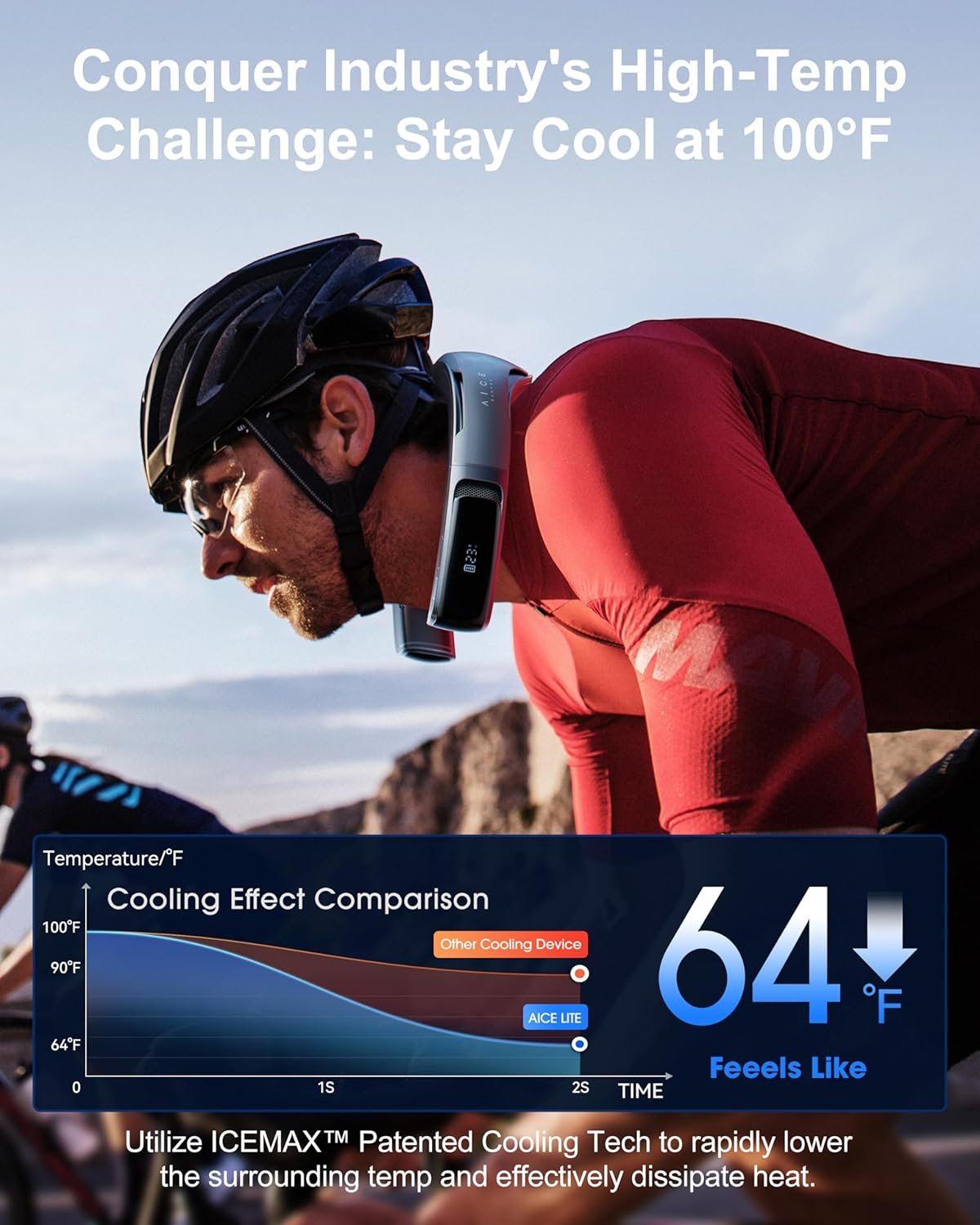 [No.1 Largest & Coolest Frozen Icyland Chilling You in Speed]: AICE LITE sets the standard for powerful cooling! With the largest cooling area on the market at 15,020mm³, this neck fan air conditioner effectively covers key heat zones and blood vessel pathways on your neck, swiftly delivering refreshing cool air throughout your body, banishing any stickiness. German custom-made semiconductors efficiently produce frost instantly. Join us in experiencing a revitalizing sensation this summer!