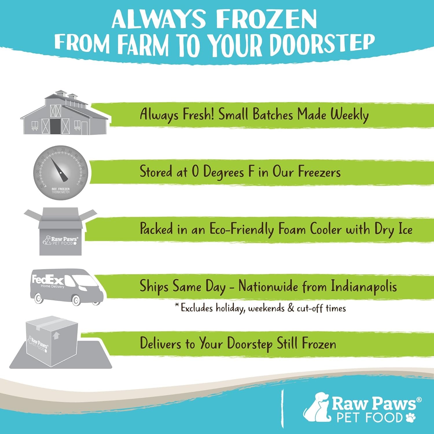 We strive to partner with responsible and ethical sources. Our mission is to deliver pet products made with quality ingredients. When you shop with Raw Paws Pet Food, you can have peace of mind knowing that you are feeding your pets what we feed our pets!