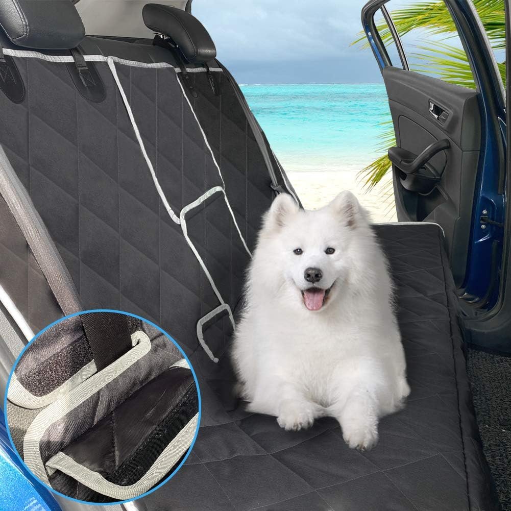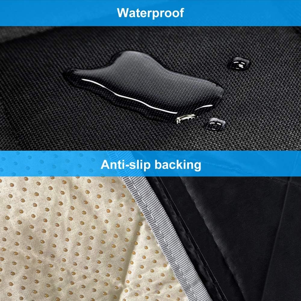 l NON-SLIP BACK – Does not slip at all even on a leather seat, so dogs will remain secure at all times in the sturdy material hammock, the back is not rubber, it will never be transferred to your seat or become sticky even in the hot summer sun
