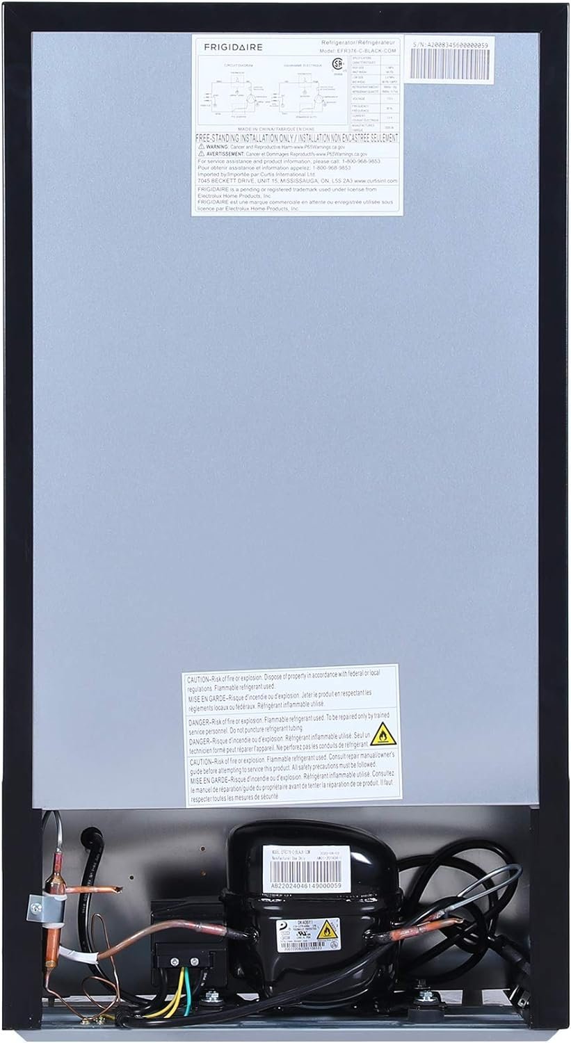 Fridge dimensions: 17-1/2” W x 18.5/8” D x 31.5/8” H | 84 L – 3.2 cu. Ft. inner space | Product weight: 50.7 lbs. | Freezer capacity: 0.2 cu. Ft. | Refrigerant type: R134a, 1.77 Oz/50g