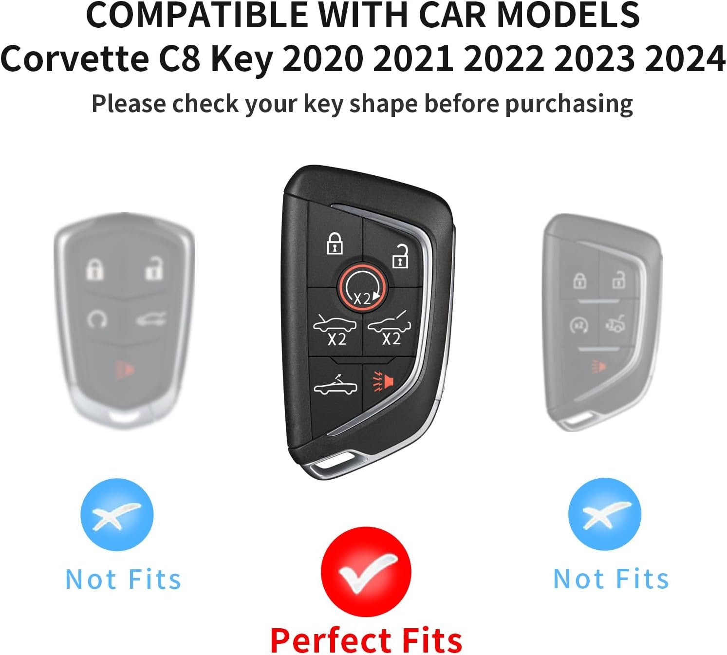 【MODELS】: T-carbon for Chevrolet key fob case cover ONLY compatible with Corvette C8 2020 2021 2022 2023 2024, it is specially designed for Corvette key fob. NOTE: Please double check that the key shells match your key shape beofre purchasing.