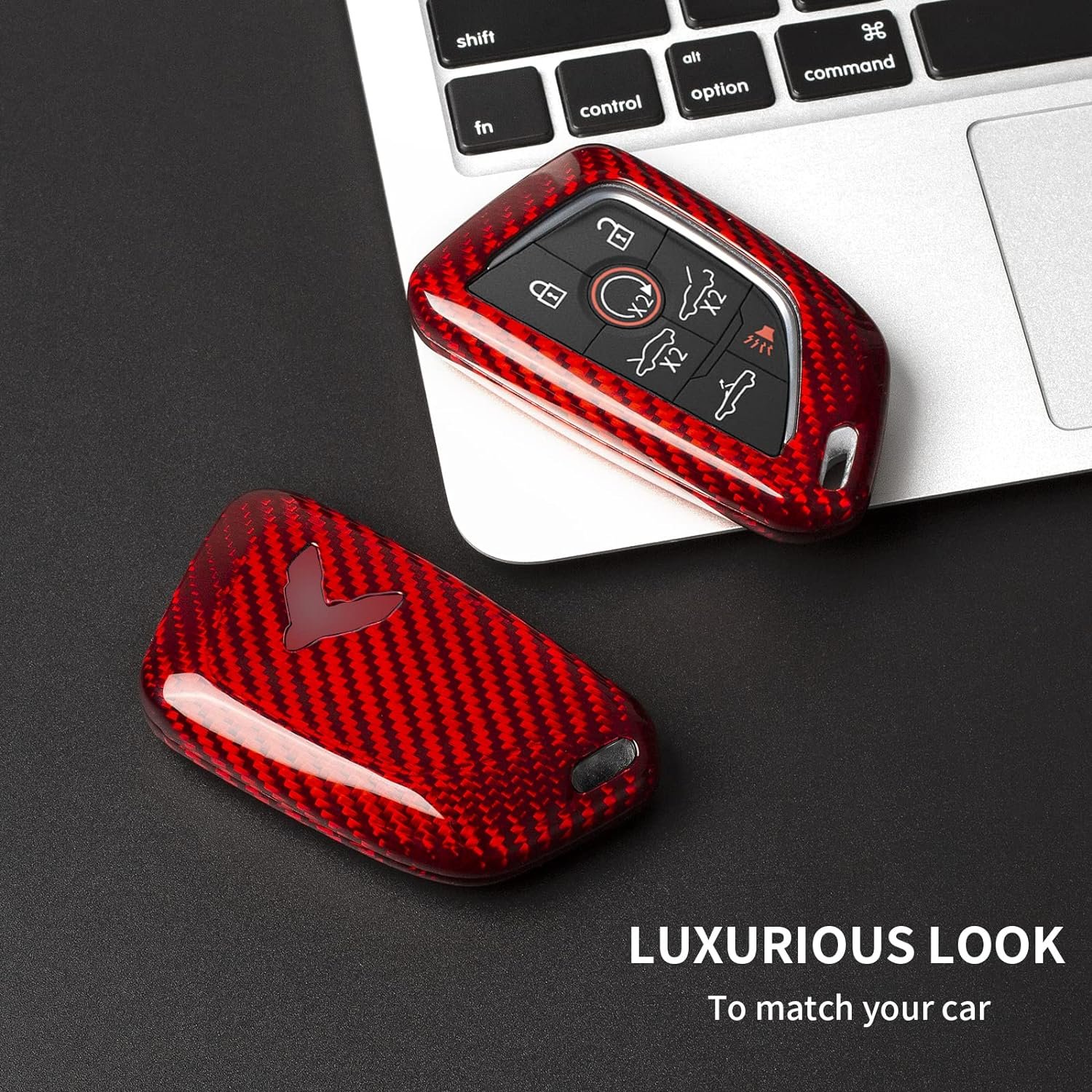 【MATERIAL】: Our key case is made of carbon fiber and resin composite material, which is lightweight and durable, while it maintains a high finish, this key cover will never fade and last a long time.