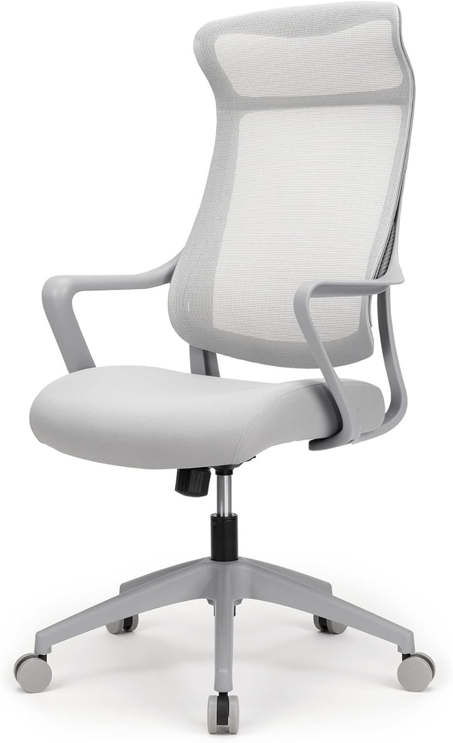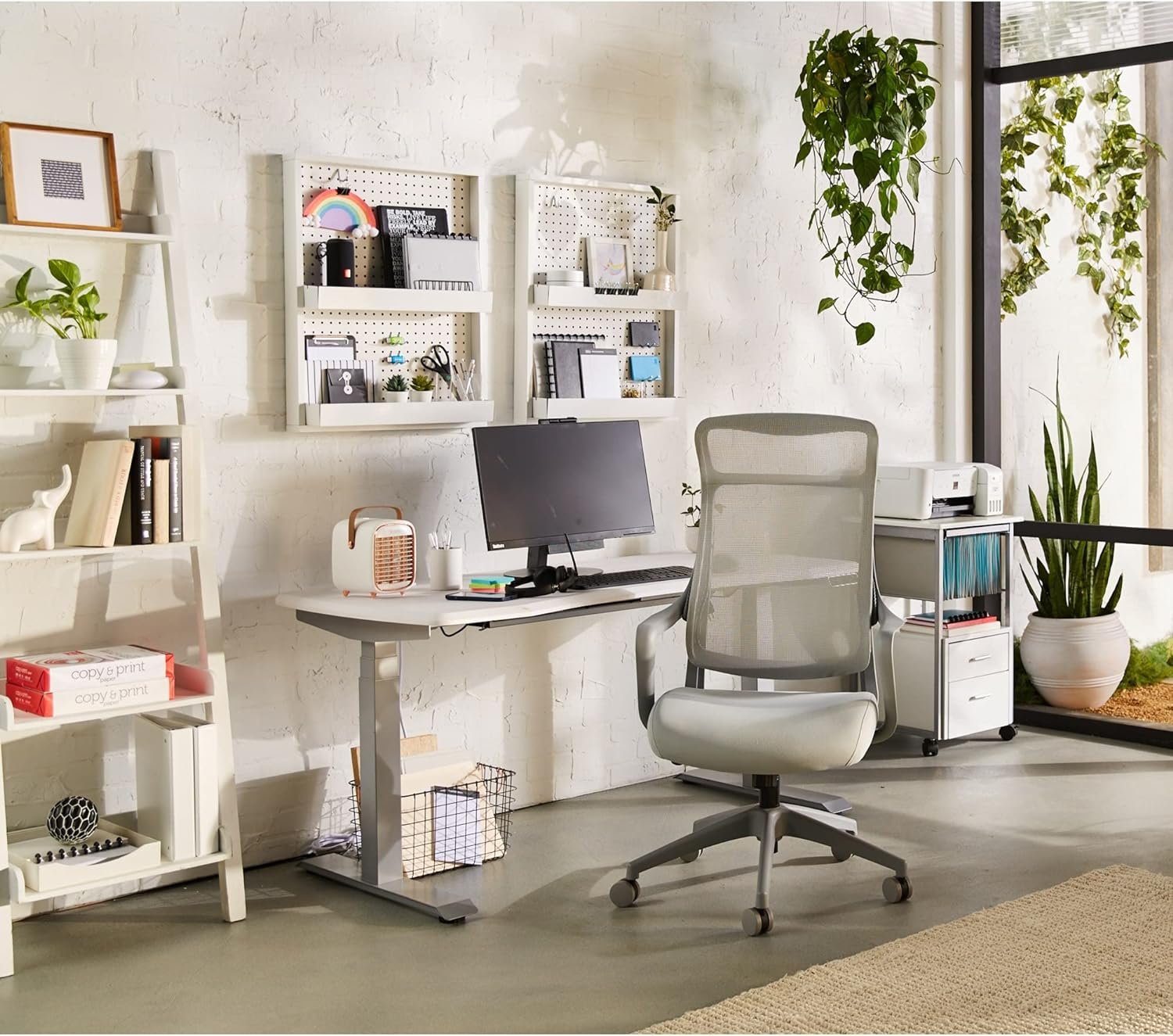 Enjoy all-day support for your head and back with this Realspace Lenzer task chair. The mesh fabric offers breathability, while the adjustable height makes it easy to customize. A swivel function and smooth rolling casters let you easily reach assorted items, and the waterfall seat cushion enhances comfort. This Realspace Lenzer task chair has fixed armrests to support your torso and shoulders. Adjustable height for easy customization. Weight capacity tested to support 275 lbs. Realspace high-back office chair is finished in gray. Backed by the manufacturer’s 5-year limited warranty. GREENGUARD certified – certified for low chemical emissions: UL.COM/GG – UL 2818. Ranked in two tiers: Certified and Gold. Forest Stewardship Council (FSC) certified – made from wood/paper that comes from forests managed to rigorous environmental and social standards, supported by the world’s leading conservation organizations. ANSI/BIFMA Compliant – This product has been tested and verified for compliance with rigorous performance requirements and safety standards related to specific furniture products. Leadership forestry – from forests or sourcing programs that meet specific environmental standards, helping you support practices that better protect forests and the environment. Less harsh chemicals – made with fewer harsh chemicals, or safer chemicals than typical alternatives, helping reduce your use of and exposure to substances that may be more harmful to your health and the environment.