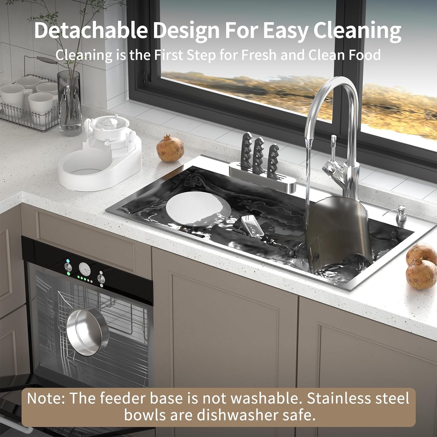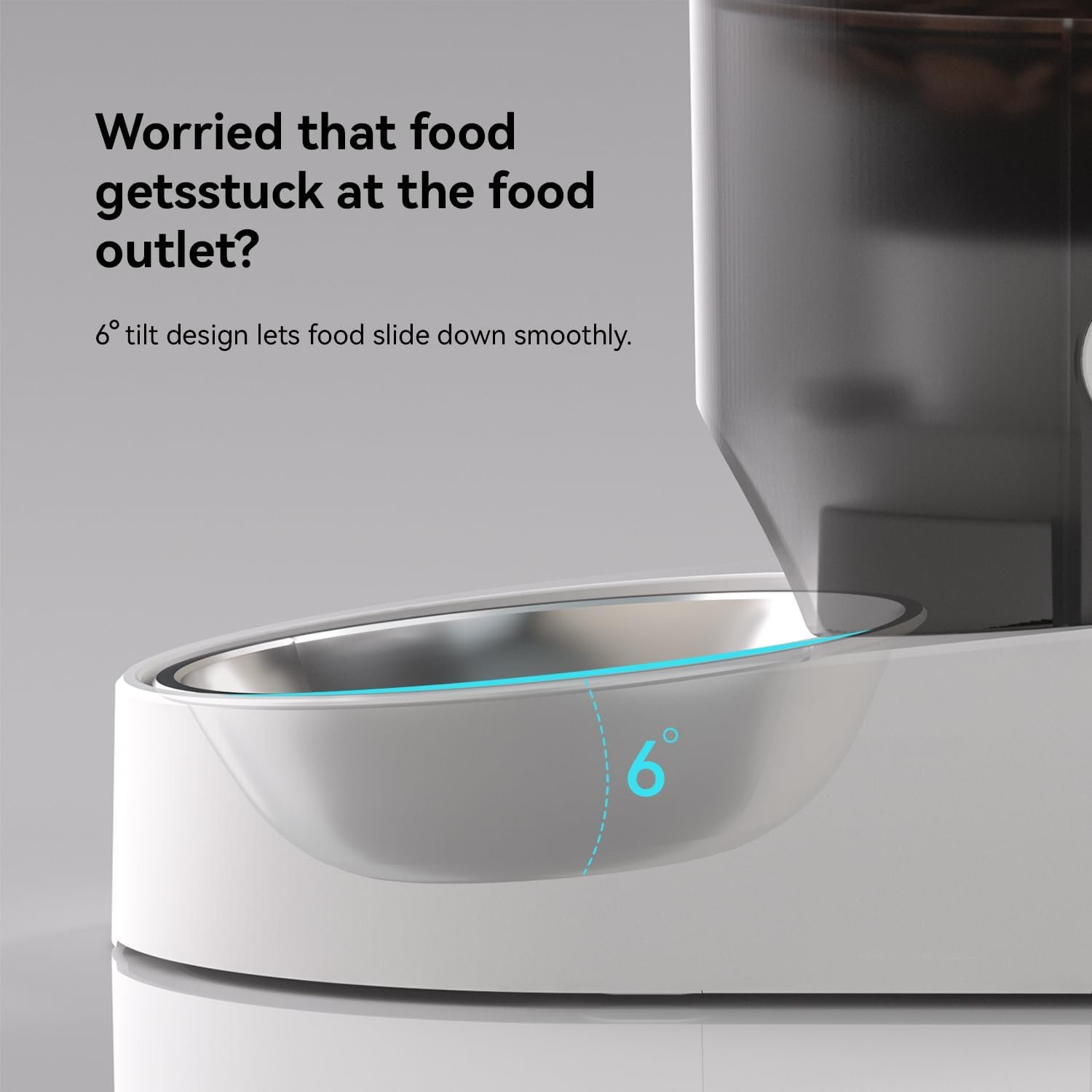 BETTER EATING DESIGN – The stainless steel bowl on the feeder tilted at 6 degrees not only provides the best way for your pet to eat, but also effectively prevents the food outlet from getting clogged.