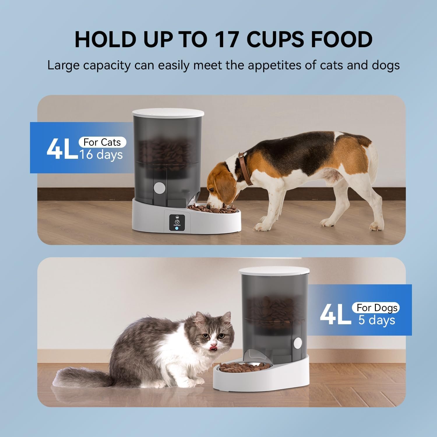 Rechargeable Automatic Cat Feeder with App – Cat Feeder WiFi 5G – Timed Cat Feeders for Dry Food – Smart Auto Dog Food Dispenser, Up to 10 Meals,12 Portions Per Meal, 4L/17 Cup