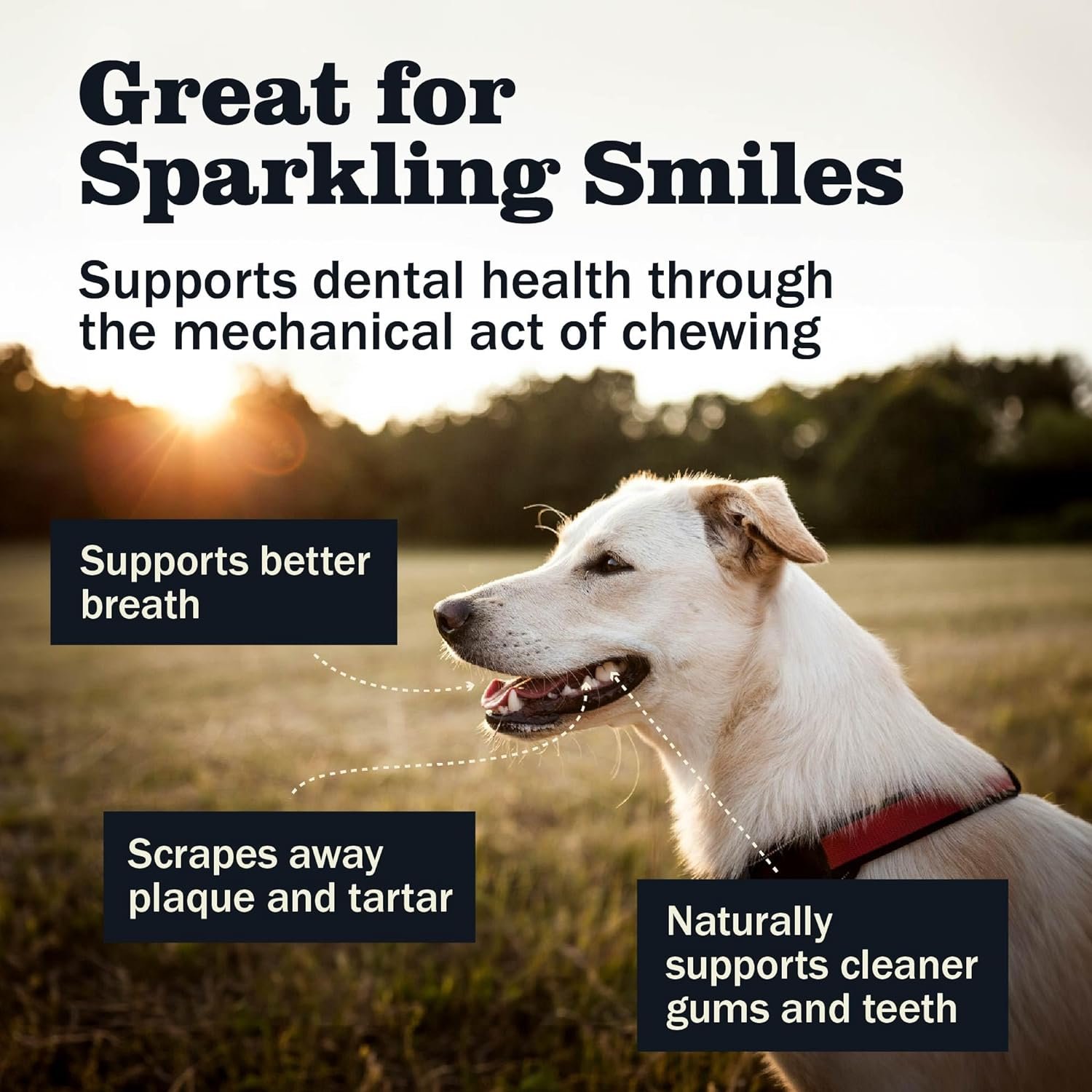 Supports Dental Health & Teething: The natural act of chewing helps support dental health by gently massaging the gums and scraping away plaque and tartar buildup for a sparkling smile.