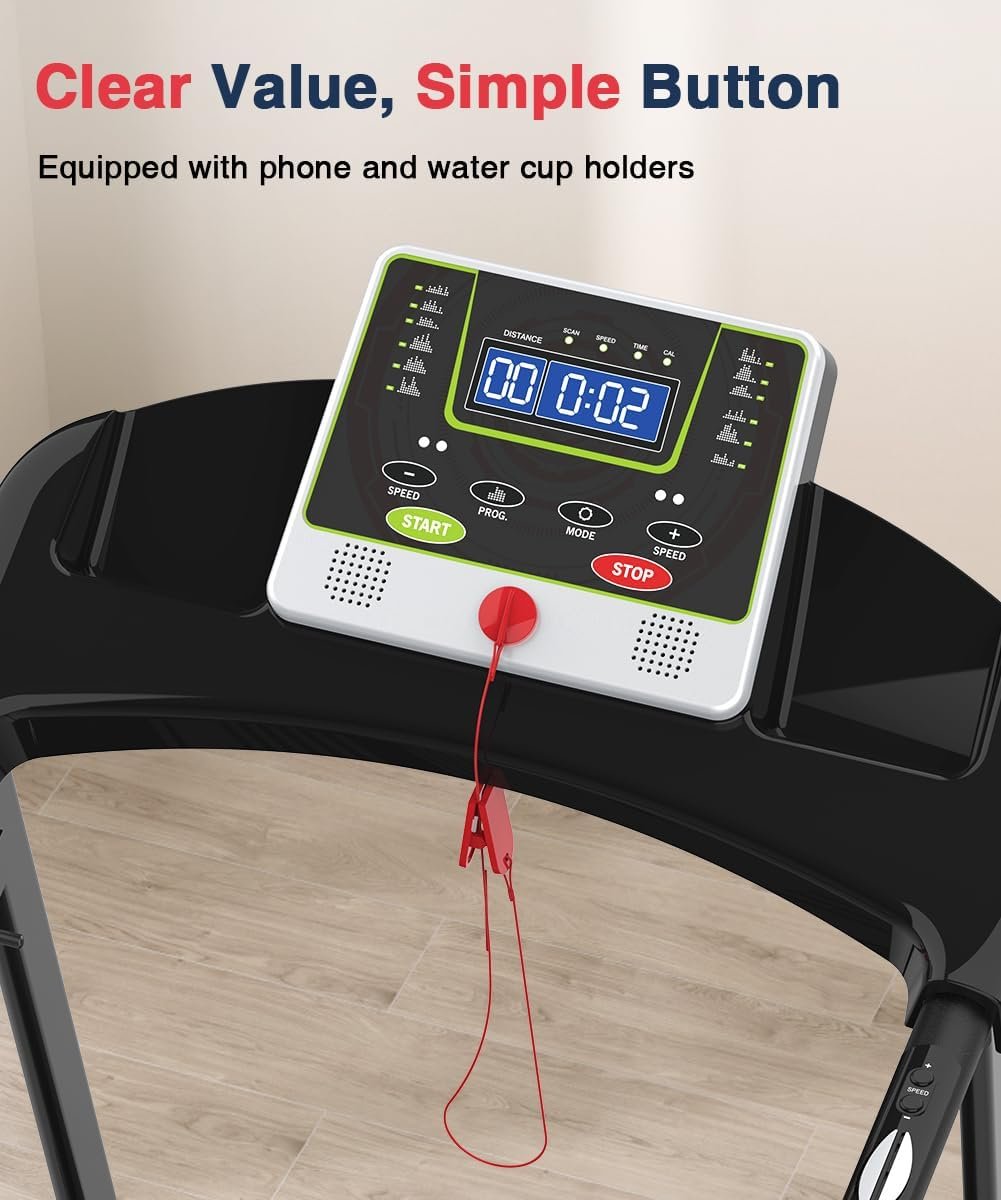 【Easy to Operate LCD Display】Seniors/convalescents can clearly keep track of all their progress with backlit screens that measure distance walked, calories burned, heart rate, speed, and more. They can also easily operate our recovery exercise treadmill with simple buttons and no bells and whistles. If there are young people at home who are willing to use it, the home gym treadmill also has 12 preset modes to choose. Phone & water cup holder are also designed.