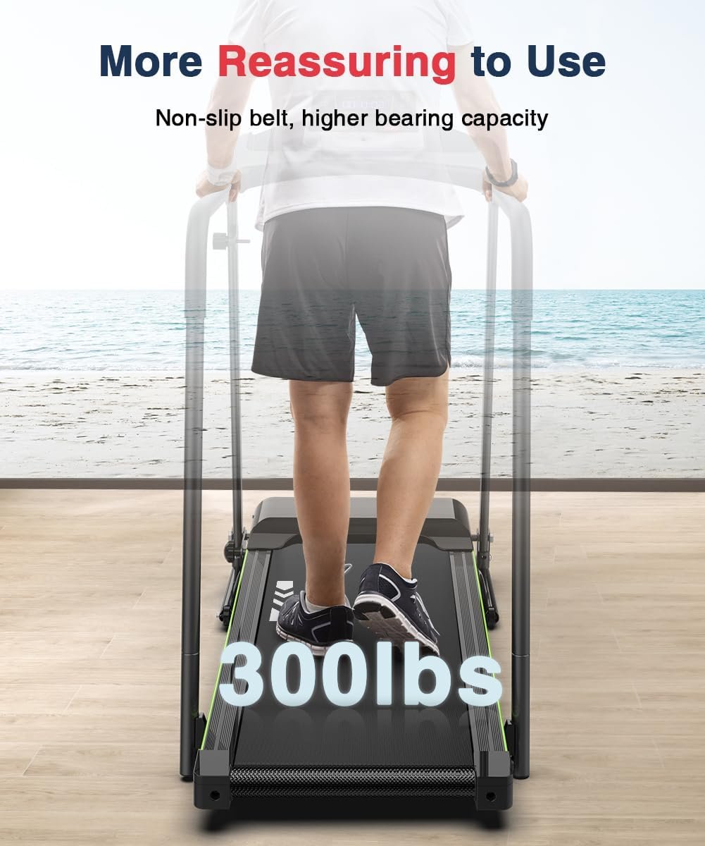 【Stronger Motor & Structure】Walk and jog between 0.5mph and 5.5mph by using the 2.25-peak horsepower motor on the indoor high weight capacity treadmill. Super powerful motor means quiet and more enjoyment of sports. Compared with other ordinary motorized treadmills, it is speed increment of 0.1mph for better adaptation. Premium materials and stable construction, supports up to 300 lb.