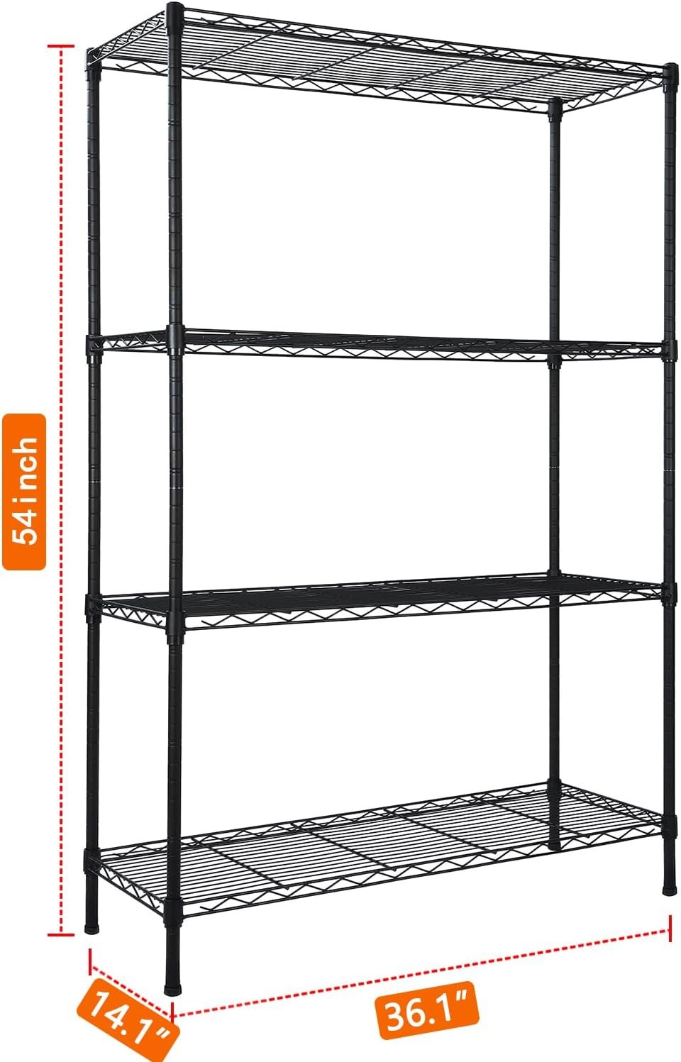 SMART STORAGE: Adjustable wire shelves perfect size(36.1”Wx14.1”Dx54”H).The storage shelves provide an enormous amount of space for you. The storage shelves can be placed in kitchens, bathrooms, rooms, living rooms, warehouses, offices, industrial, commercial exhibitions, hotels, supermarkets, etc.