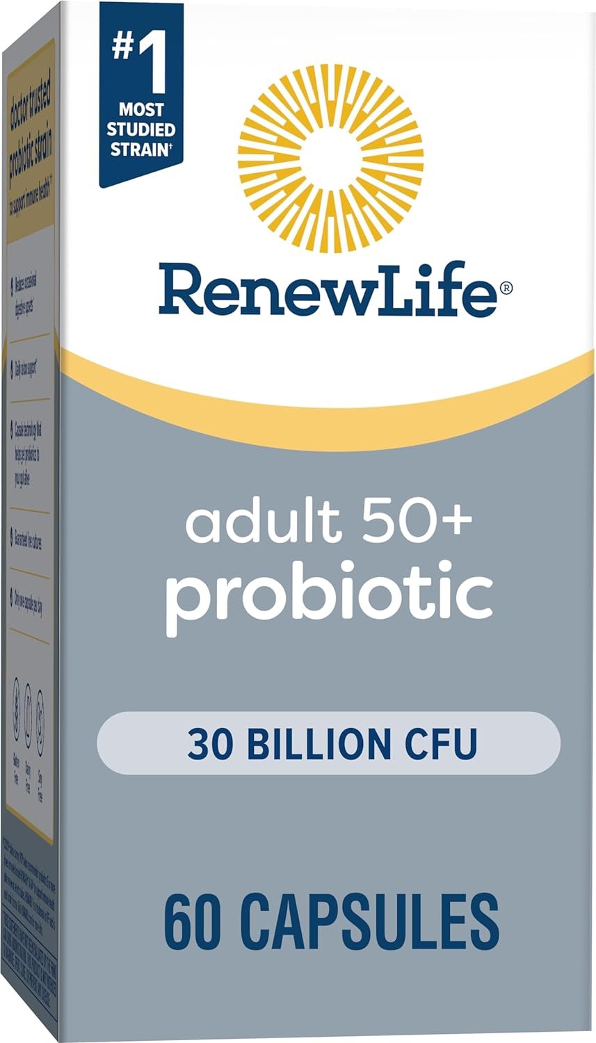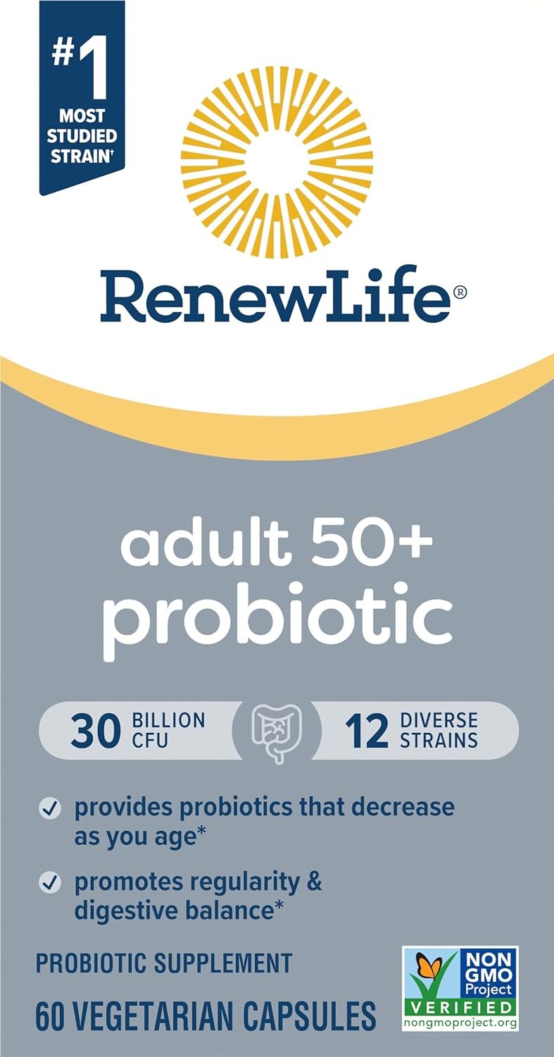 PROBIOTIC: Includes one 60-count bottle of Renew Life Probiotic Adult 50 Plus Capsules 30 Billion CFU to support digestive health and provide daily immune support (1)